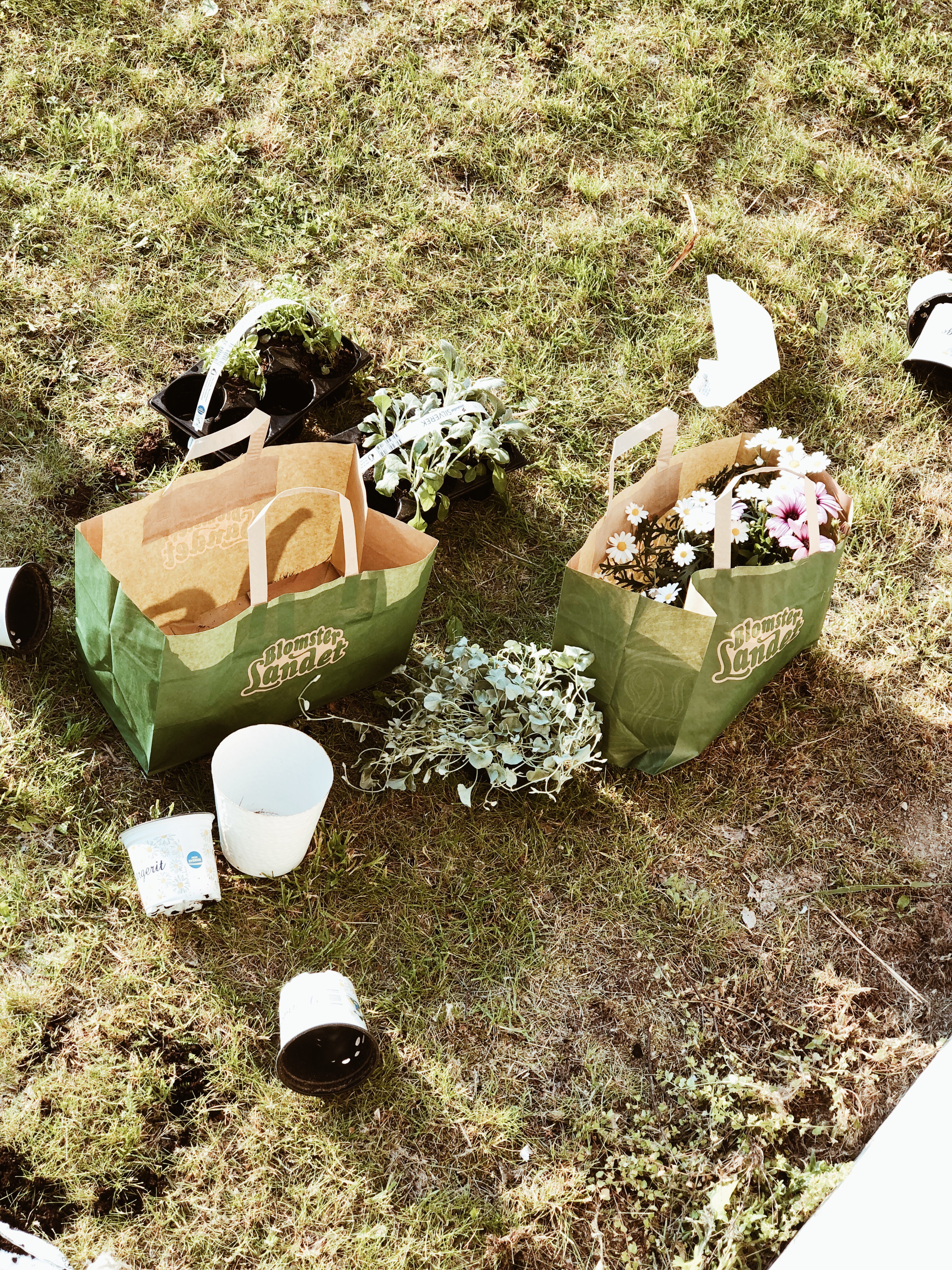 Efter lite värktabletter och insmörjning av tigerbalsam lyckades jag ändå plantera lite av blommorna vi köpte.