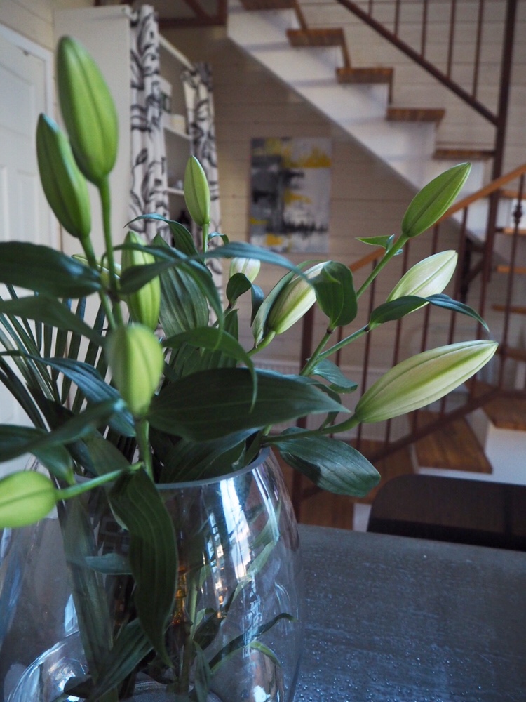 Liljorna är inköpta och står nu och bara väntar på att slå ut på betongbordet. Älskar liljor. Så vackra och ståtliga.