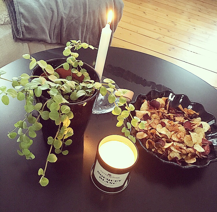 Efter jag hämtat Milo från skolan åkte vi och handlade. Sen kom jag hem och slarvstädade snabbt. Torkade svarta bordet, plockade och tände doftljuset, då doftar det t.o.m lite nystädat sådär.