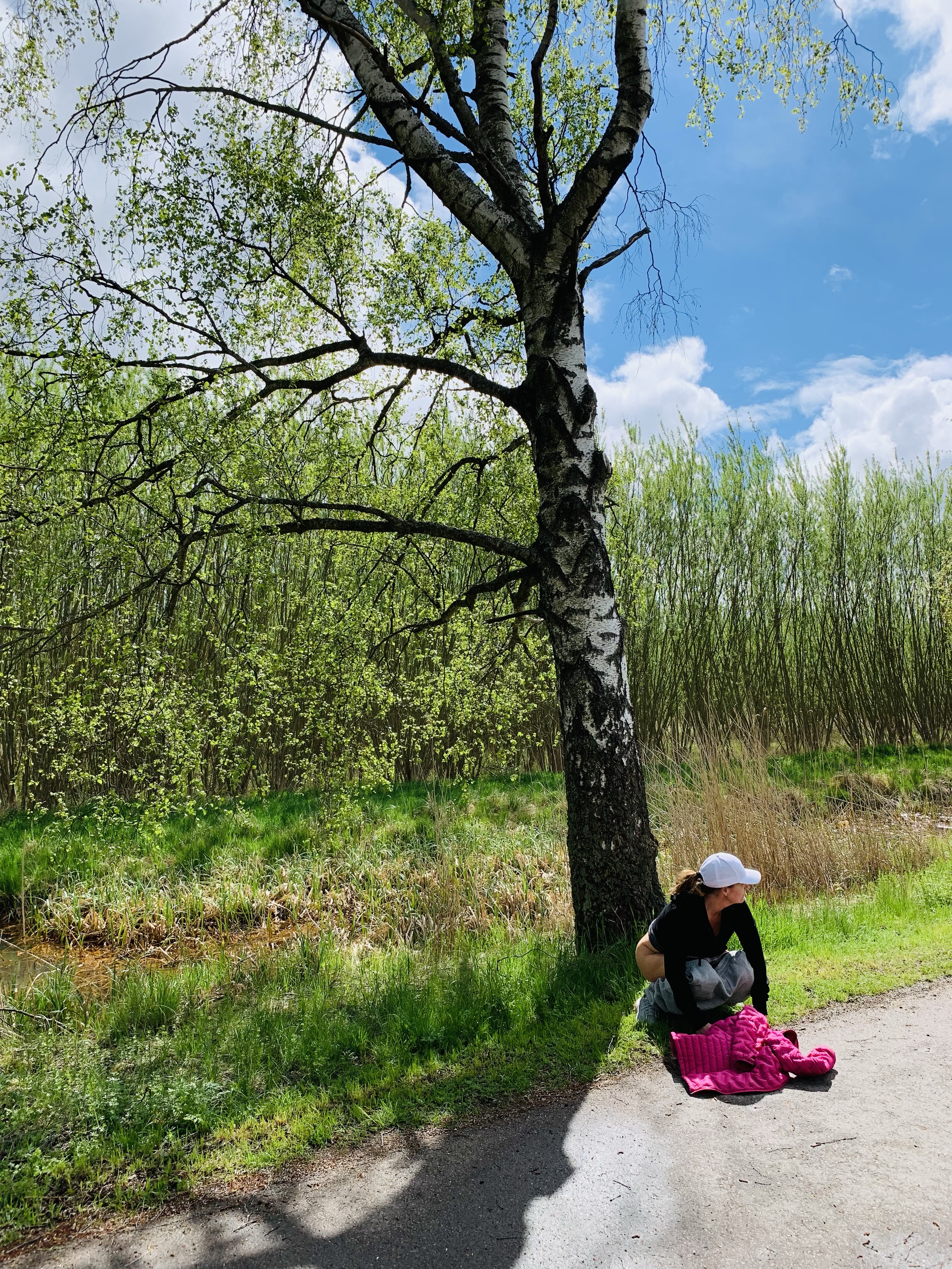Igår morse startade dagen med en skön och lång promenad. Vi tog en 8 kilometers runda, den känns otroligt lång ibland. Helst om man är kissnödig som jag blev igår. Nöden har ingen lag, eller som någon skrev på den här bilden när jag la ut den på Instagram. ”Det kan kosta 800 kr”. Haha, tur att polisen inte åker så mycket på trottoarerna. Någon frågade också varför jag inte satte mig bakom trädet, för fästingarna för helskotta. Livrädd för de vidriga små krypen!