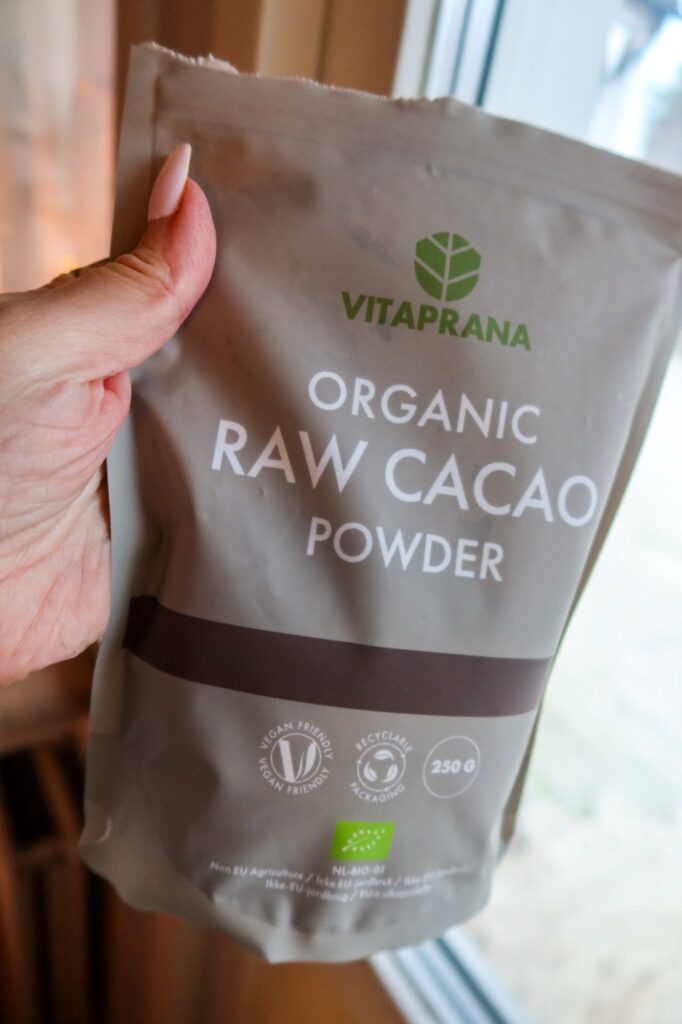 Det här kakaot använder jag. Ekologiskt odlade Criollo-bönor från Peru. Trädet kallas för Drottningen av kakao. Ger de bästa kakaobönorna med mycket smak av kakao. Torkats och malts vid en temp av 40 grader för att bevara så mycket som möjligt och då får den ”raw”. Rikt på både kostfibrer och protein. Finns HÄR.