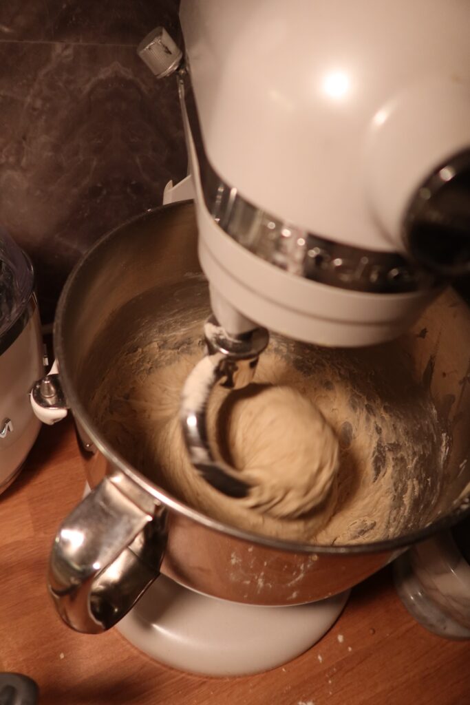 OBS: Mjölmängden kan skilja sig en del då det beror på olika mjölkvalitet, ålder osv. Degen ska vara smidig men EJ släppa från väggarna i bunken. När du petar ned ett finger i degen så ska det inte fastna massor med deg på fingret, men den ska kännas kladdig fortfarande. Hoppas jag förklarar någorlunda förståeligt. 😅 Visar bild på den färdiga degen längre ned.