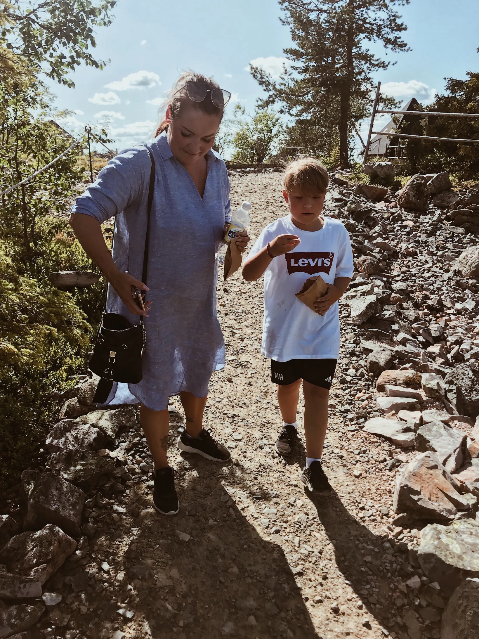 Först var det uppför på en grusväg i 2,5 km. Var så glad att vi fick med oss mamma och pappa också. Här tankade vi lite energi innan det var dags att ta sig uppför de 150 trappstegen till Ametistgruvan.