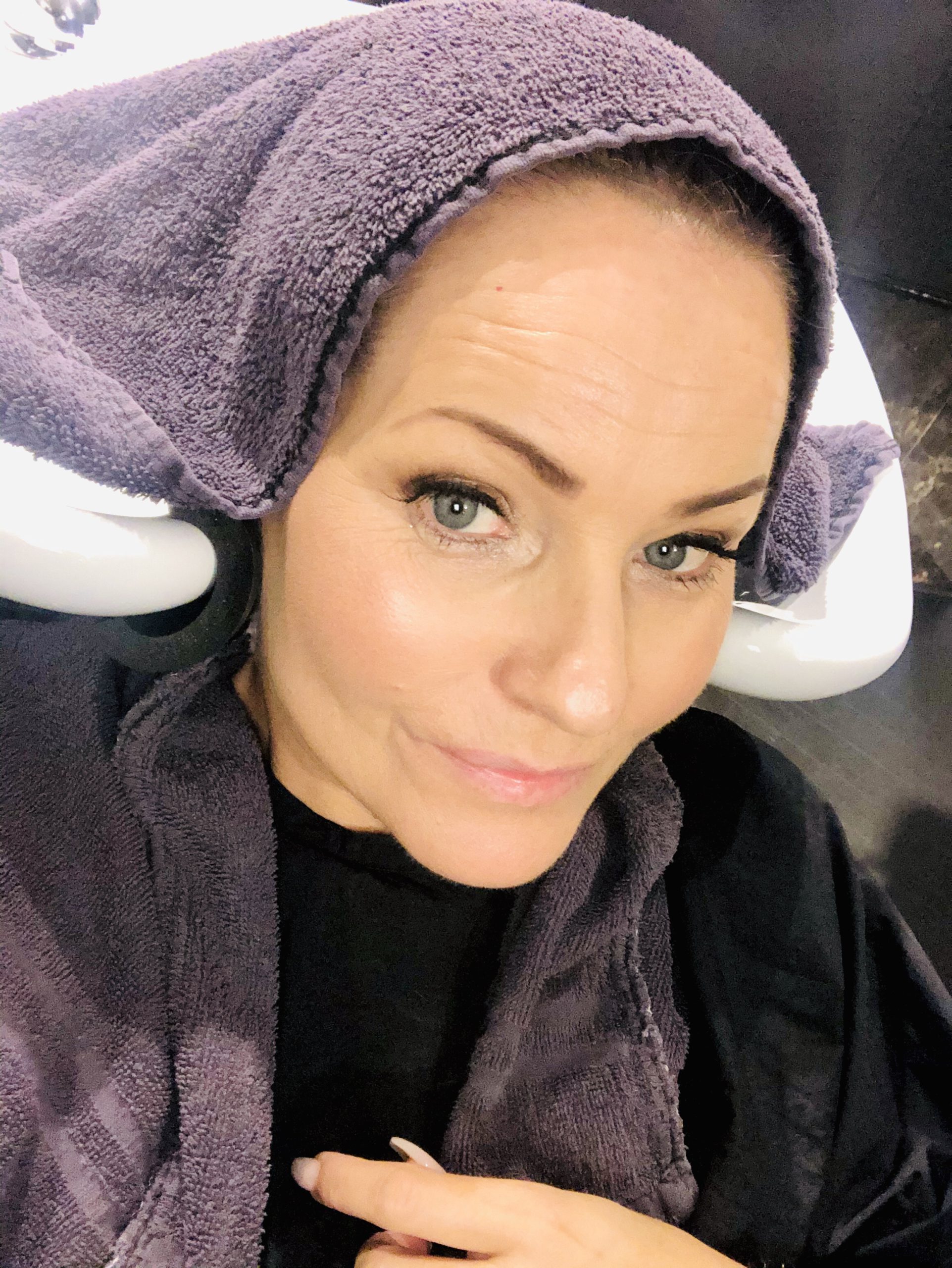 Såhär såg det ut på vägen. Det svarta skulle bort och mitt hår skulle ljusas upp. Känns helt rätt att överge det där jättemörka.