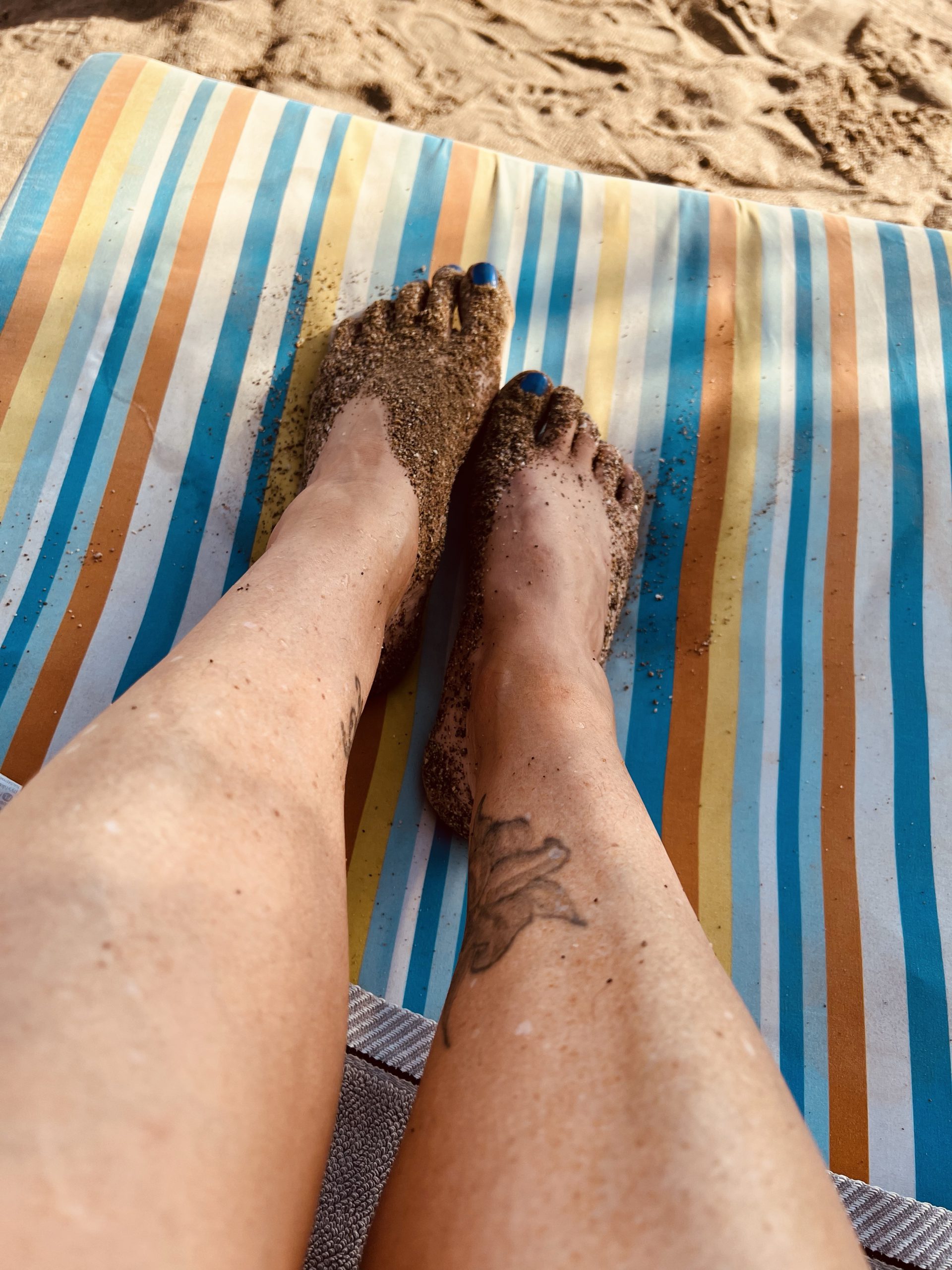 Efter maten blev det stranden. Tog de lite billigare solstolarna. De andra kallar vi för lyxxxxxxstolarna. Kostar 250 kr/st. Dessa kostade 100 kr/st. En viss skillnad. Sandiga fötter får också en annan betydelse här. Sanden är grov. Och det lägger sig som ett lager. Bättre att låta det torka helt och sen vifta bort. Annars är det som att ta det grövsta sandpappret du har och gnugga sönder fötterna med. 😅