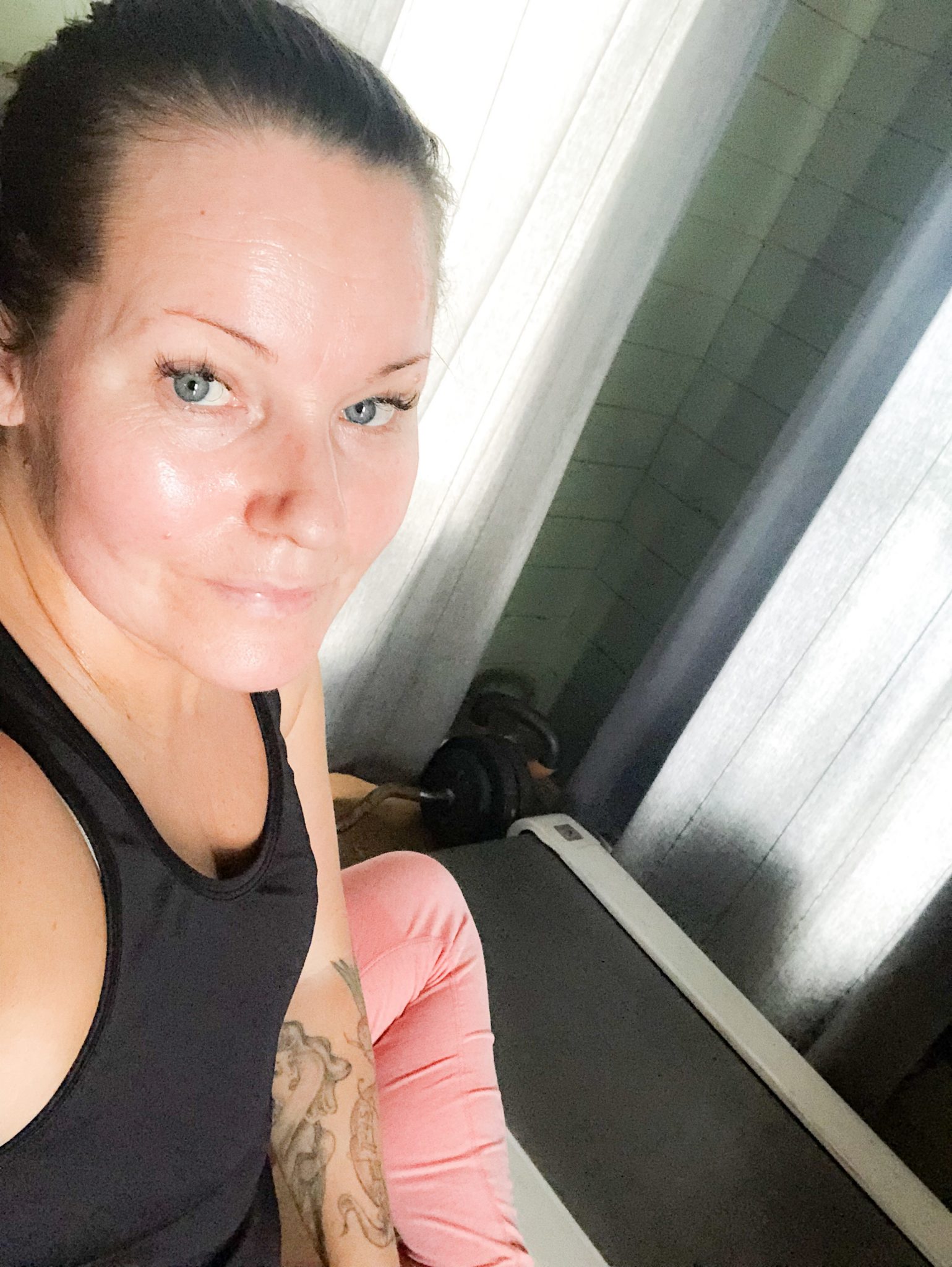Jag startade dagen med en kortis jogg och promenadsväng på löpbandet hemma. Mitt i allt såg jag hur jäkla äckligt det var med massa damm och gamla svettdroppar så då blev jag tvungen och kvista efter trasan och putsa. Hann att bli svettig i alla fall.