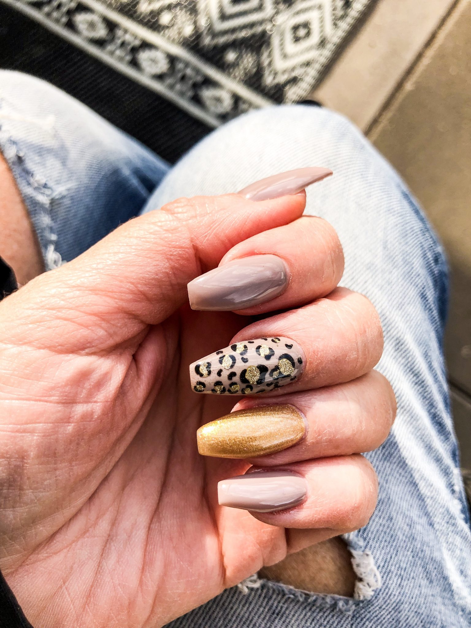 Jag hann också med nya naglar idag. Körde lite beige, guld, djur tema idag. Så kul att variera sig.