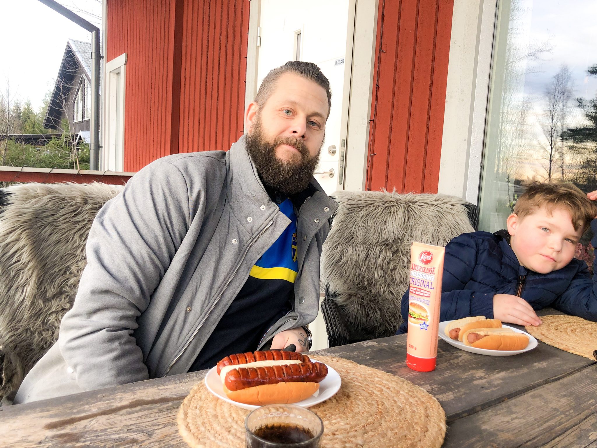 Värmesvampen på och första grillmiddagen åts ute. Tjockkorvar i olika smaker, Denniskorv till Milo och grillad majs kommer man långt på. Altanen är alltså invigd idag. Ser fram emot mysiga middagar och vinkvällar på vår altan i sommar.