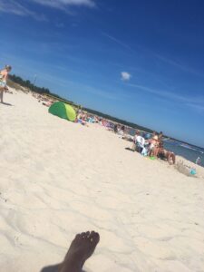 Här sitter jag nu. Tillbaka på mitt underbara Öland igen. Stranden är vackrare än någonsin och sanden om än inte ännu mindre kornig och mjuk. Jag ÄLSKAR verkligen det här stället. Min själ kurrar nästan högljutt.