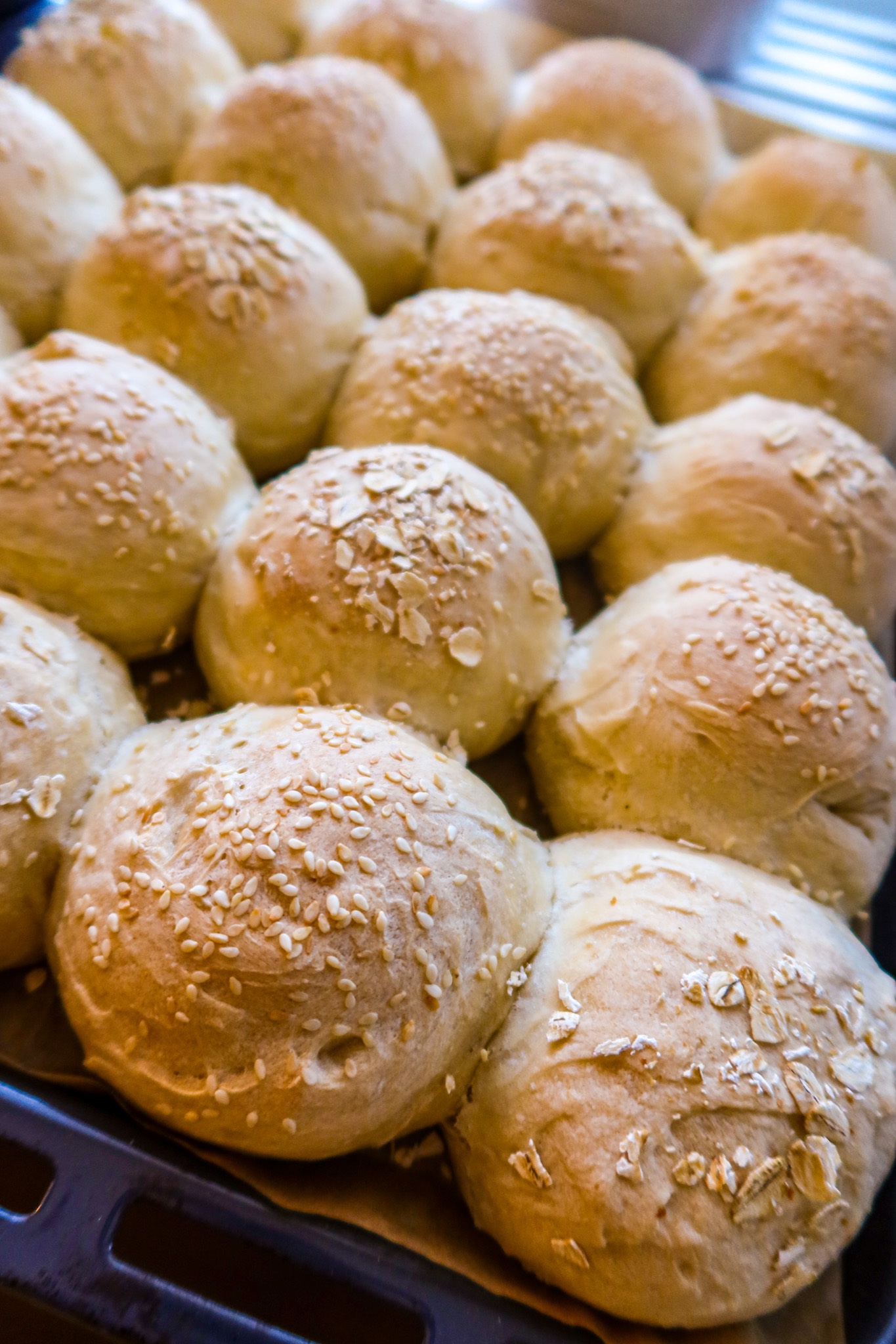 Som jag har sovit, fullmåne natt och allt. Oftast har jag jobbigast natten innan fullmåne, men fullmåne natten sover jag oftast bra igen. Så skönt! Hörni, kickar igång denna Söndag med ett nytt recept, jag gjorde nämligen färska frallor till familjen till frukost igår, och dom blev sååååå goooda. Nej men så himla fluffiga, så himla goda i smaken….och så var det så smidigt och tränga ihop ett gäng på plåten så det blev som ett brytbröd nästan.
