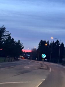 Alltså, ljuset! Här var klockan 17:47 i Lördags, solen hade precis gått ned så himlen brann i horisonten. Hur underbart är det inte att dagarna börjar bli längre? Jag känner att hela kroppen vaknar till liv igen efter den långa vintern. Det och att jag har hittat en ny favoritkombination till frukost – chiapudding med mandelsmör och blåbär. Så himla gott, kommer recept på det framöver!