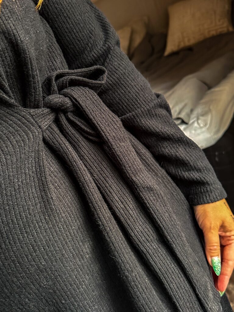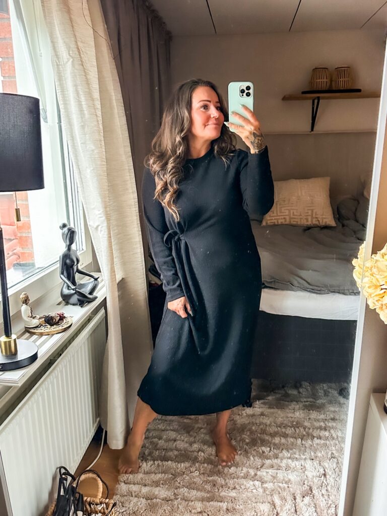 Supermysog klänning som är sååå mjuk, finns i fin beige också. Verkligen så himla fin med knytet i midjan som är en så fin detalj på klänningen. Höstens måste!