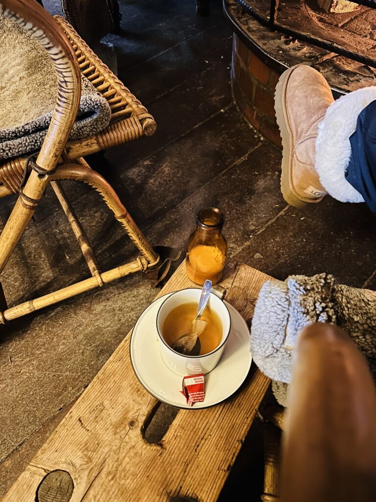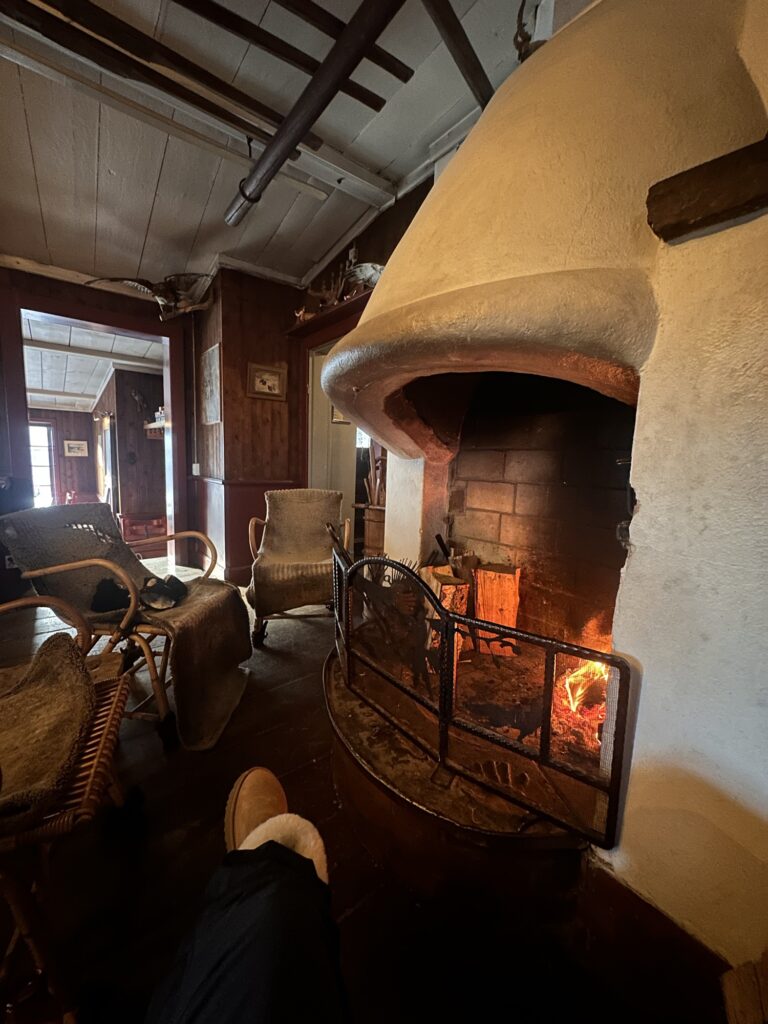 Jag har fått sitta på mitt favoritställe Fågelboet och druckit varmt te vid brasan. Här satt jag medan Tony & Milo var och cyklade. Sen kom de också hit, blöta av svett. De hade haft en riktigt bra cykeltur.