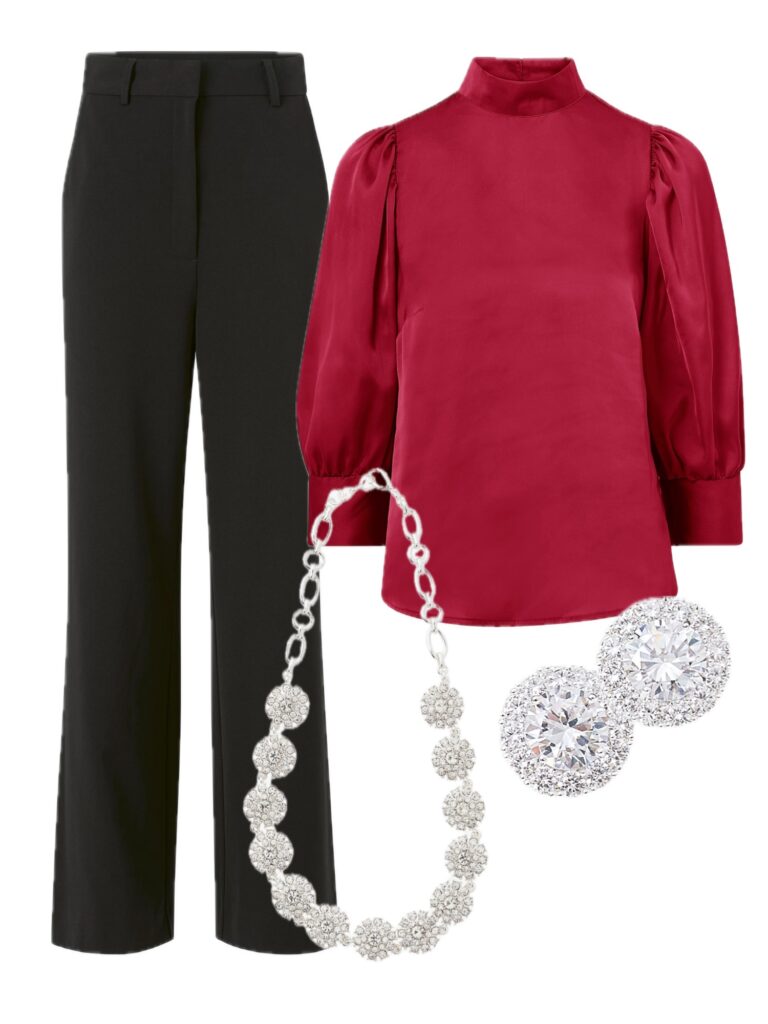 Vid byxa med resår i bak // Blus (REA) // Halsband // Örhängen