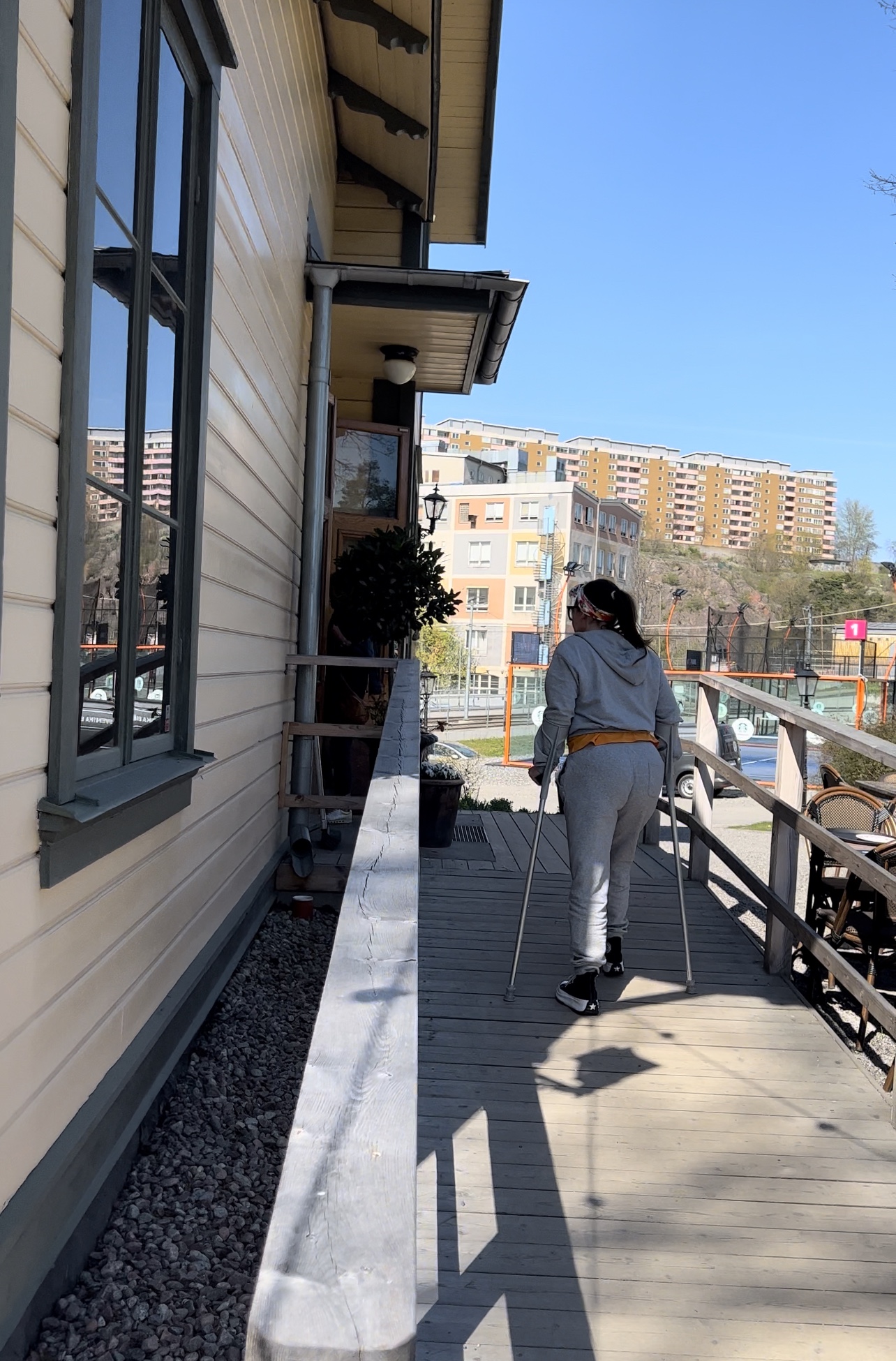 Att jag igår hade en bra dag. Att jag kunde gå med kryckorna typ 200 meter. Kunde stå i solen och bara njuta av solen, helt ljuvligt!