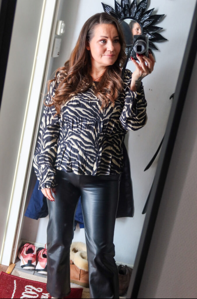 Ja men äntligen ett par coatade fejskinnbrallor REA (<klicka för byxan) som är lika sköna på som tights. Det ÄR tights, resår i midjan och massor med stretch. Dessa kommer jag använda massor. De är bootcut och lite sådär ”kortare” i benen i modellen. Så användbara till mycket, snygga både till vardag och till fest. Snyggt till både en grövre känga och till en stövlett.