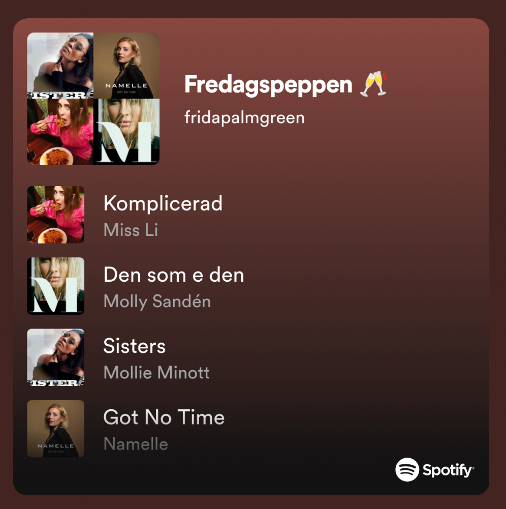 Sätt på lite bra musik! Den här FREDAGSPEPPSLISTAN (<klicka för listan) är superbra just när man kommer hem och vill börja preppa för helgen. Kanske ställa härliga färska blommor i en vas, plocka undan lite, kanske städa, börja förbereda maten, kanske en Fredagsdrink.