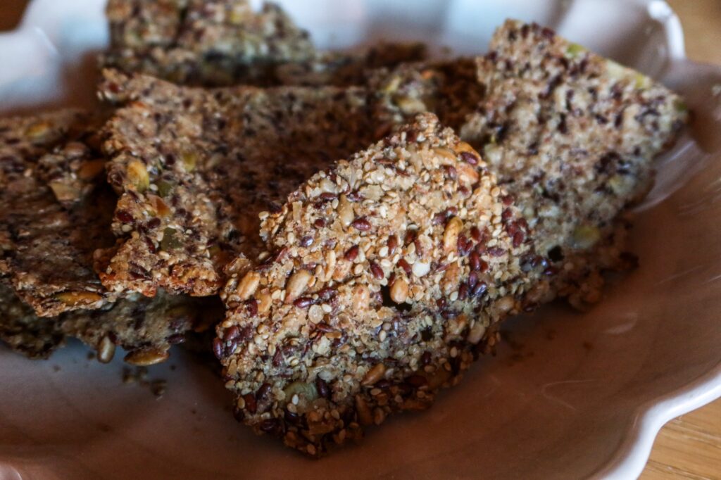 När den stått klart i kylen (minst 4 timmar) så plattar du ut den på 3 bakplåtar. Sedan är det bara att grädda. Detta blir så smaskigt och är mina absoluta favorit när det kommer till fröknäcke just nu.