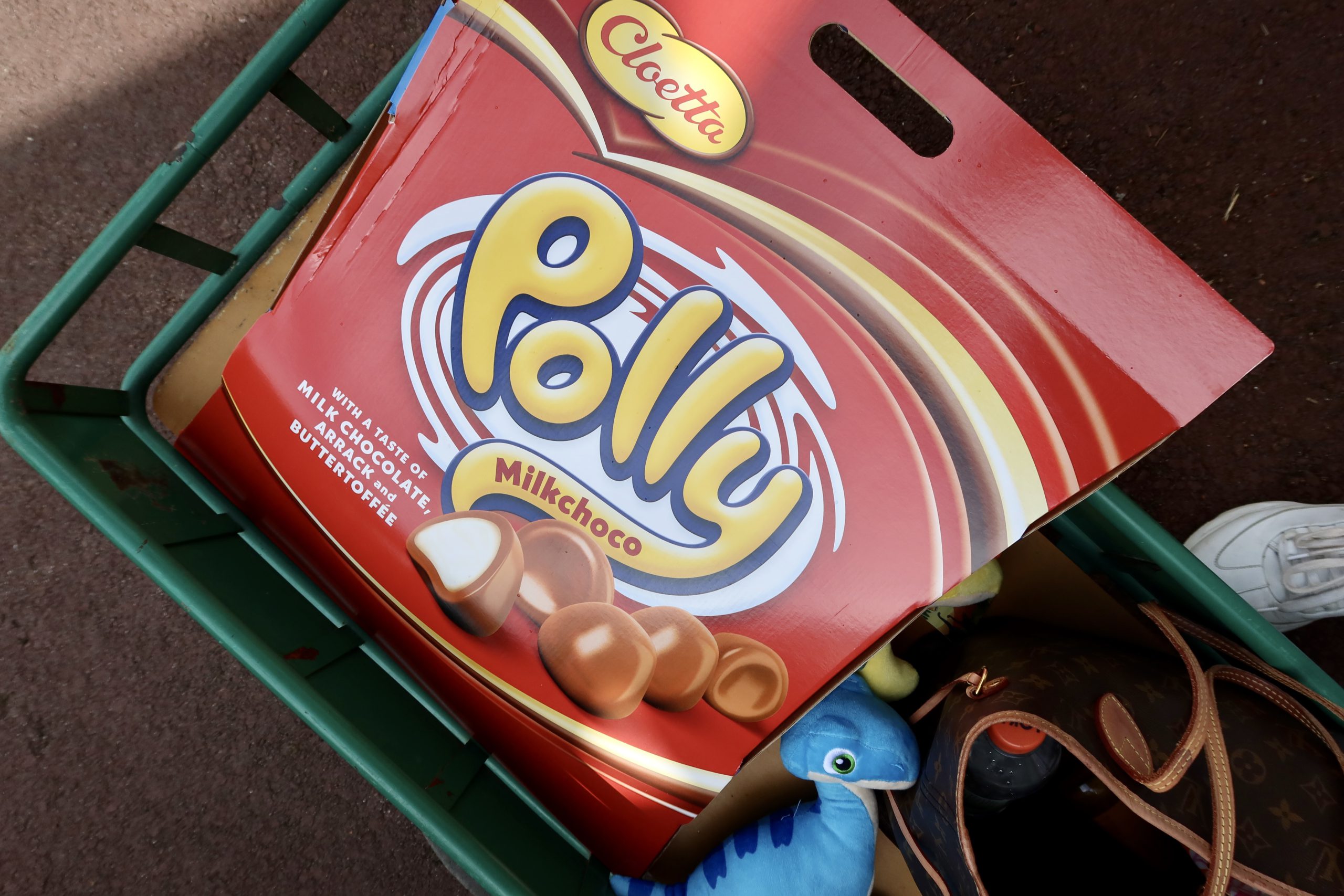 Vi hade rätt stora framgångar när det kommer till chokladhjul och basket. Två bollar och inte bara en polly utan även en marabou fick följa med oss hem. Kasta boll på burkar gav oss dinosaurier också. Så skrindan kom till användning kan man säga. 😀