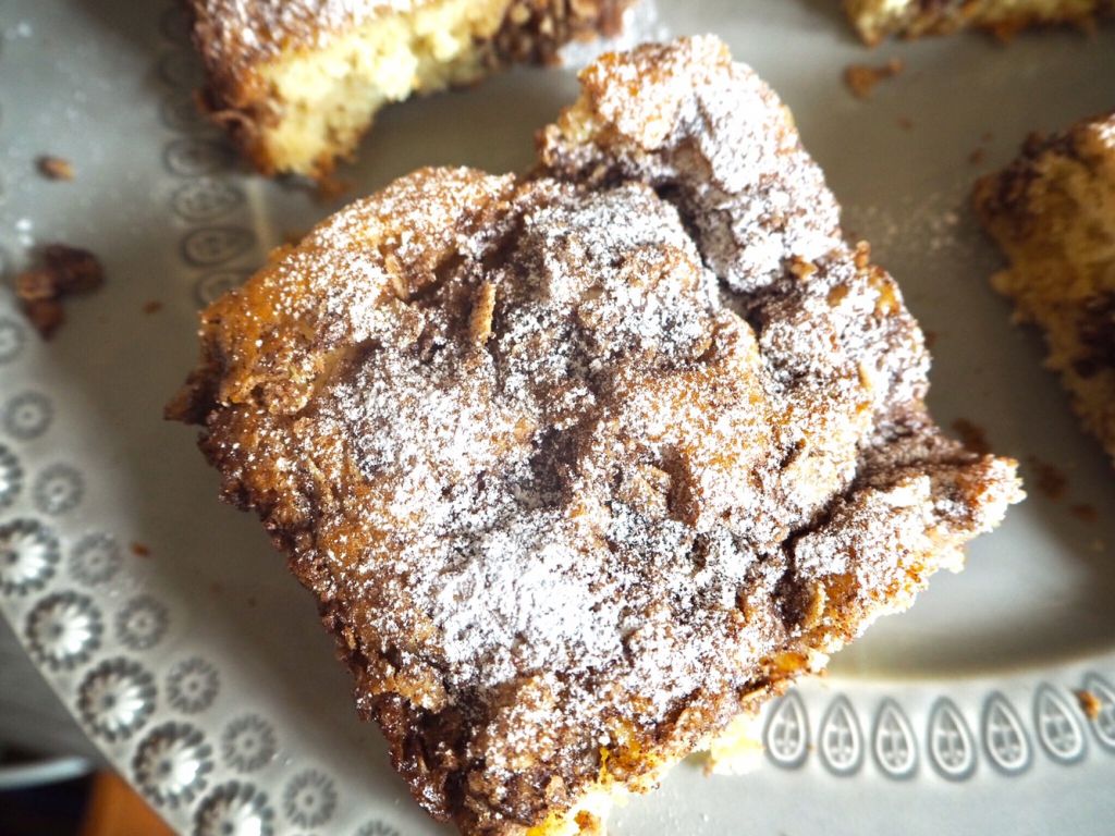 Detta är en kanelkaka som är helt fantastiskt otroligt god alltså. Bakad i långpanna dessutom så det finns mycket utav den. Tungan krullar sig och du kan garanterat inte sluta äta. I promise you!
