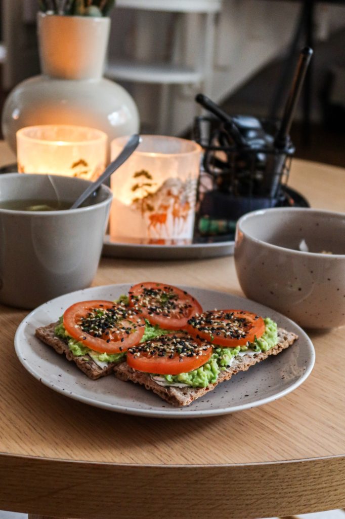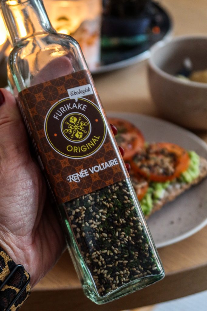 Från frukosten i morse, kokosyoggi med osötad äpplemos och blåbär. Till det 2 glutenfria knäckemackor med avokado & tomat och min craving just nu, furikake. Sååå smaskigt!