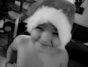 Såhär glad och lycklig var vår solstråle idag innan han åkte till skolan! Dagen till ära blev det tomteluvan på.