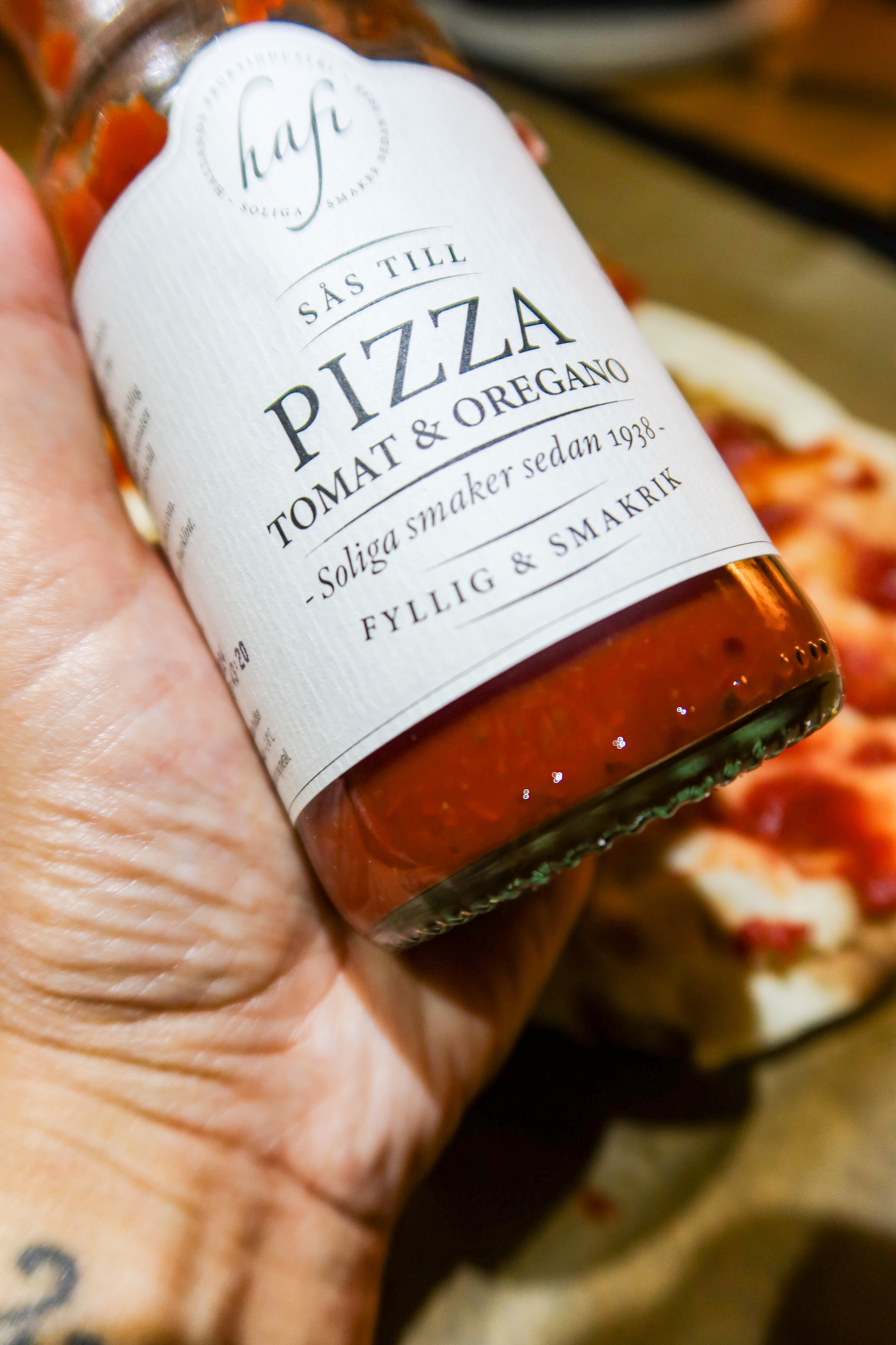 Tomatsås från Hafi, den slår precis allt i pizzasåsväg, den är mer krämig än rinnande och ger sååå god smak. Bra att ha hemma också när man blir sugen på hemlagad pizza. Tipsar också om att ha i det istället för tomatpure i mat. Ger så god smak. Googlade och hittade det HÄR (klicka).