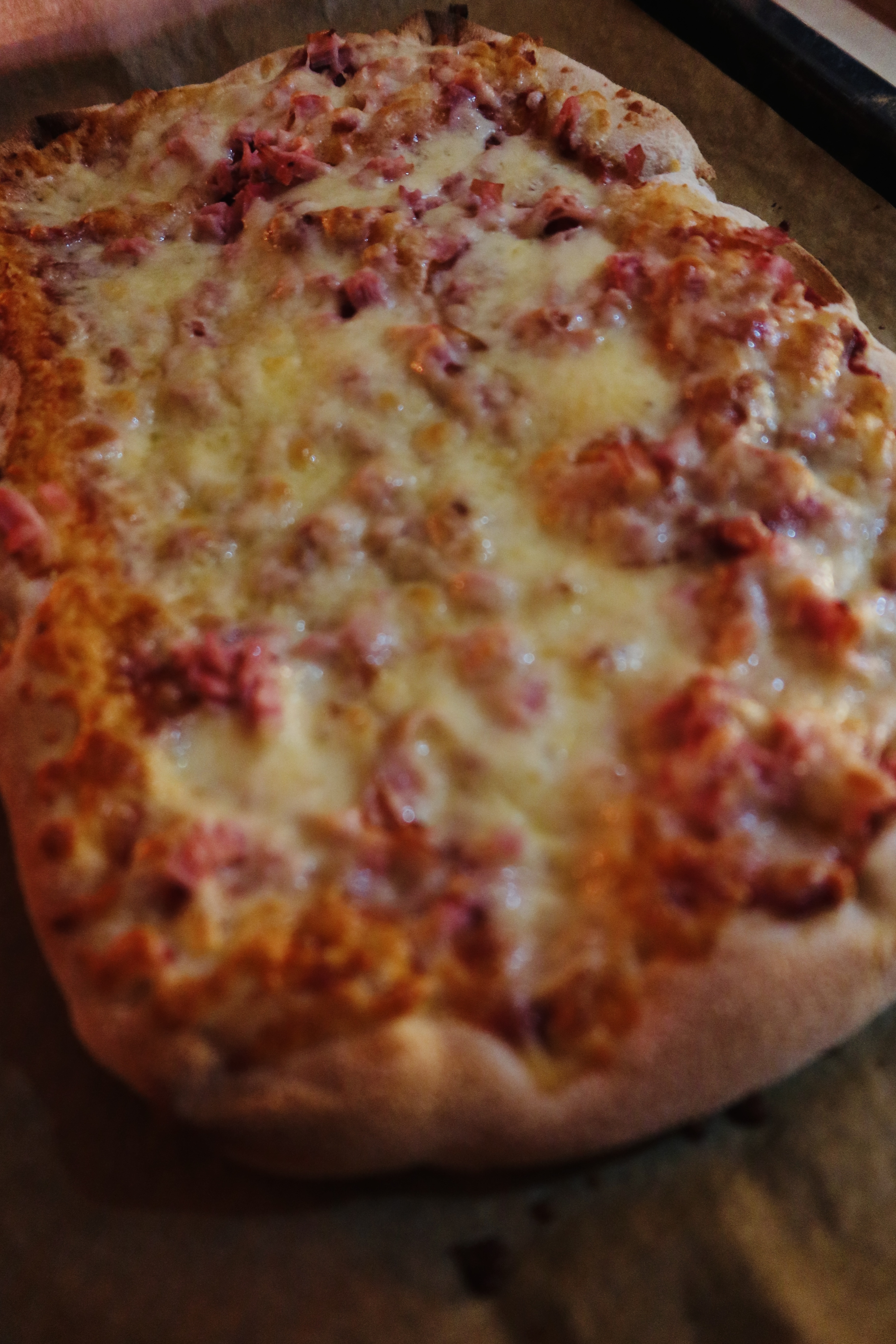 En lite halvbra bild på hur Milos pinsa såg ut när den var klar. Den blev väldigt god då jag smakade den också. Pinsa får verkligen toppbetyg av mig.