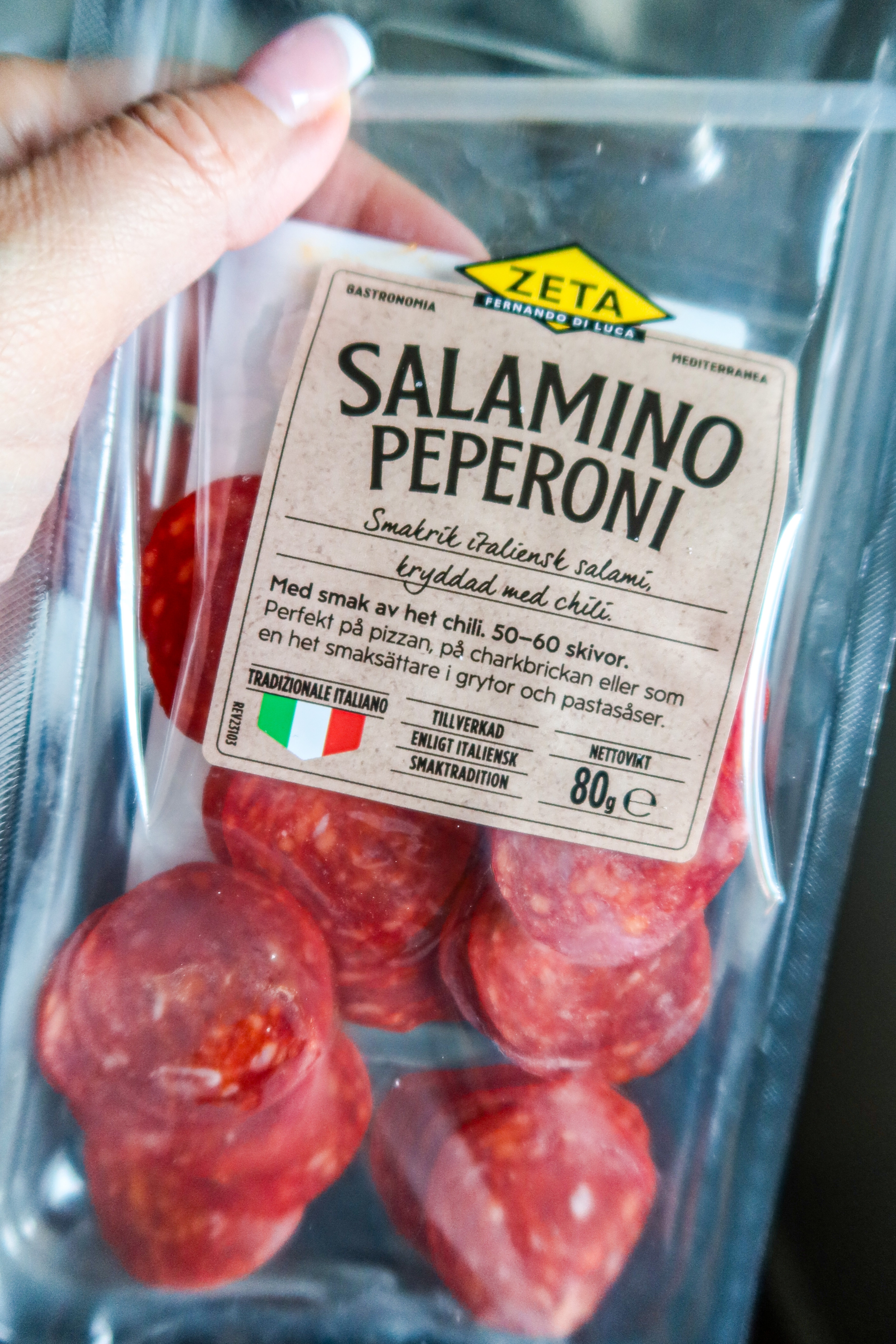 Hade också på denna salami, kan verkligen tipsa om den också. En arg liten rackare som jag brukar kalla den. Men inte för arg utan alldeles lagom. Jag talar såklart om att den har lite hetta i sig. Den är väldigt smakrik och passar så bra på pizza. Testa även att ha den i grytor, ger lite hetta och smak. Så gott! Testa t ex att ha denna i min Fläskfilégryta (<klicka) eller i min kycklinggryta med soltorkade tomater (<klicka), parmesan och massa gott.