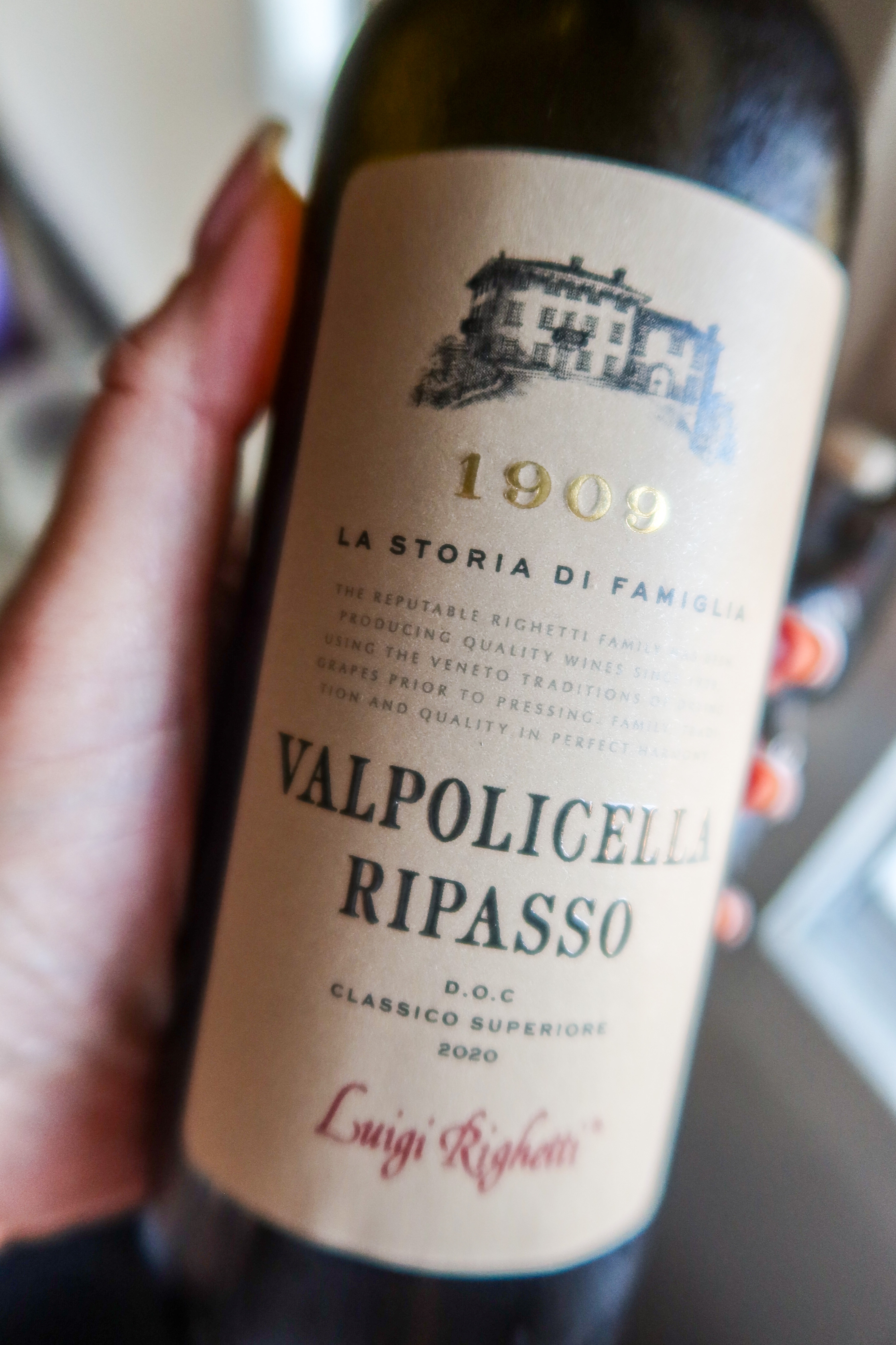 Detta vin blev det till. Valpolicella ripasso Luigi Righetti, det passade helt ok. Tror dock det passade bättre till Tonys pizza som var lite mer mustig än vad min var. Annars ett gott vin, plus att de går att köpa i mindre flaskor också.