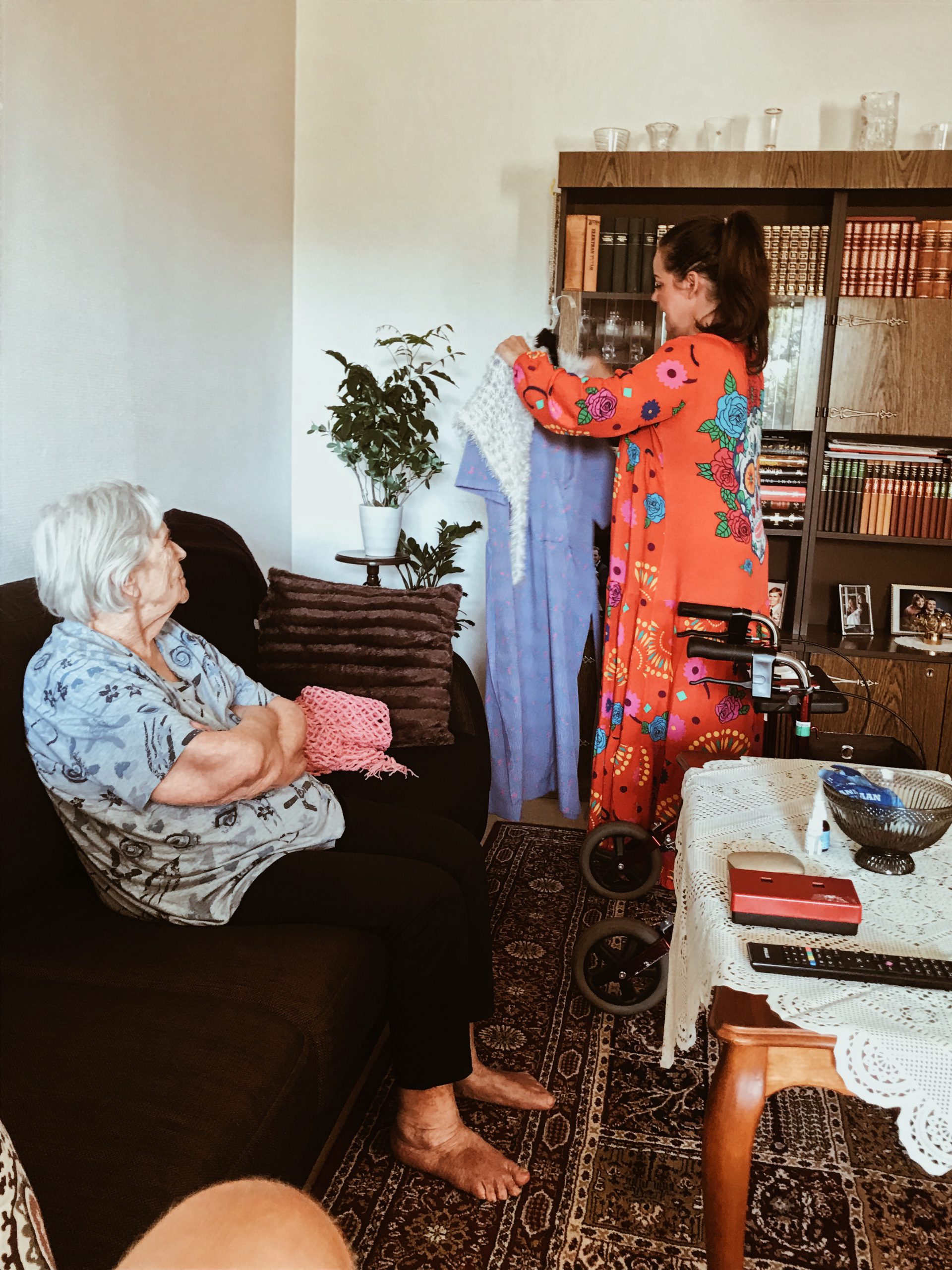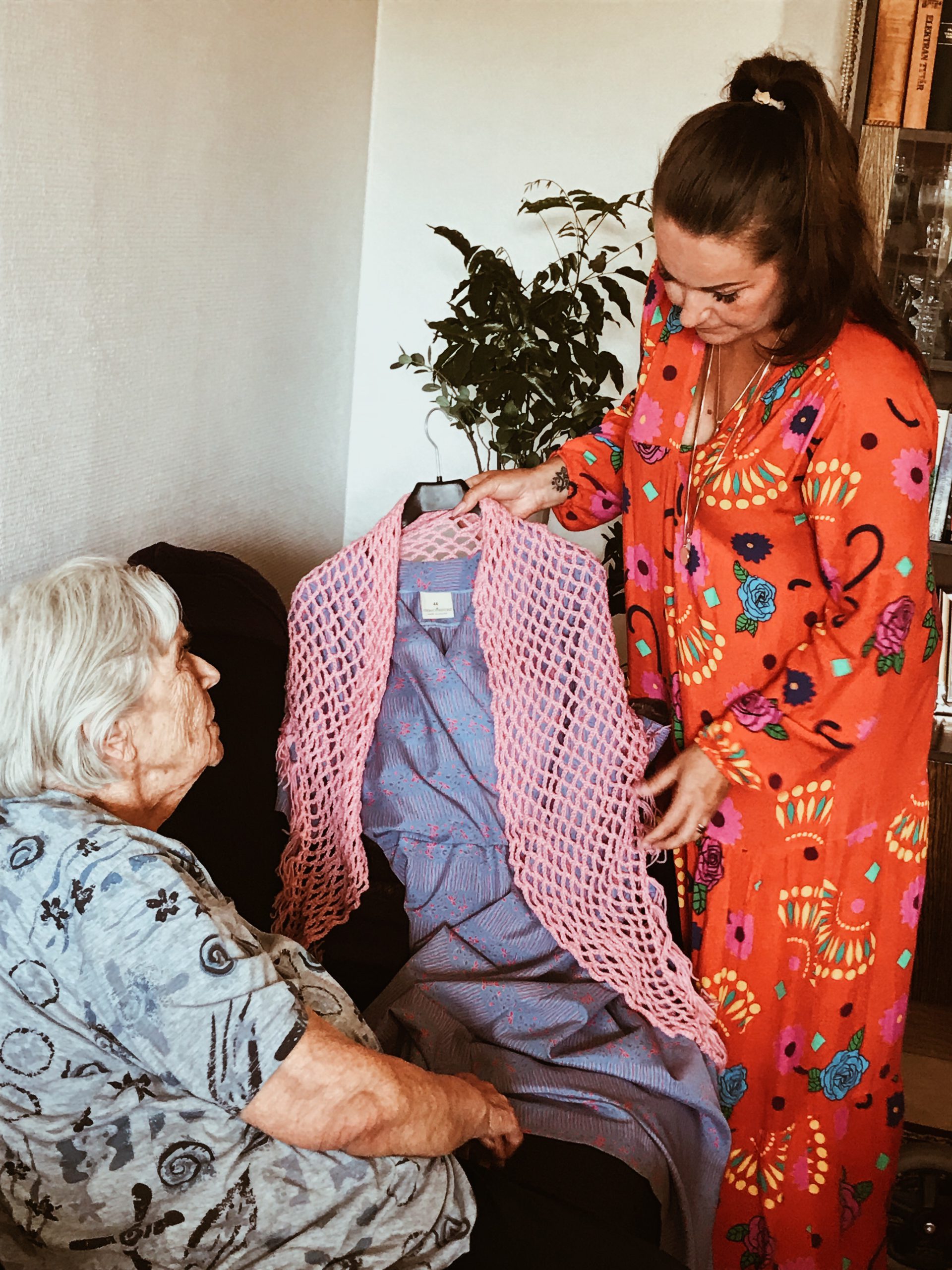 Innan vi åkte var jag och hängde med mormor i några timmar. Vi provade ut vilken sjal hon skulle ha till kvällens fest också. Det var riktigt mysigt och få sitta och prata länge med mormor.