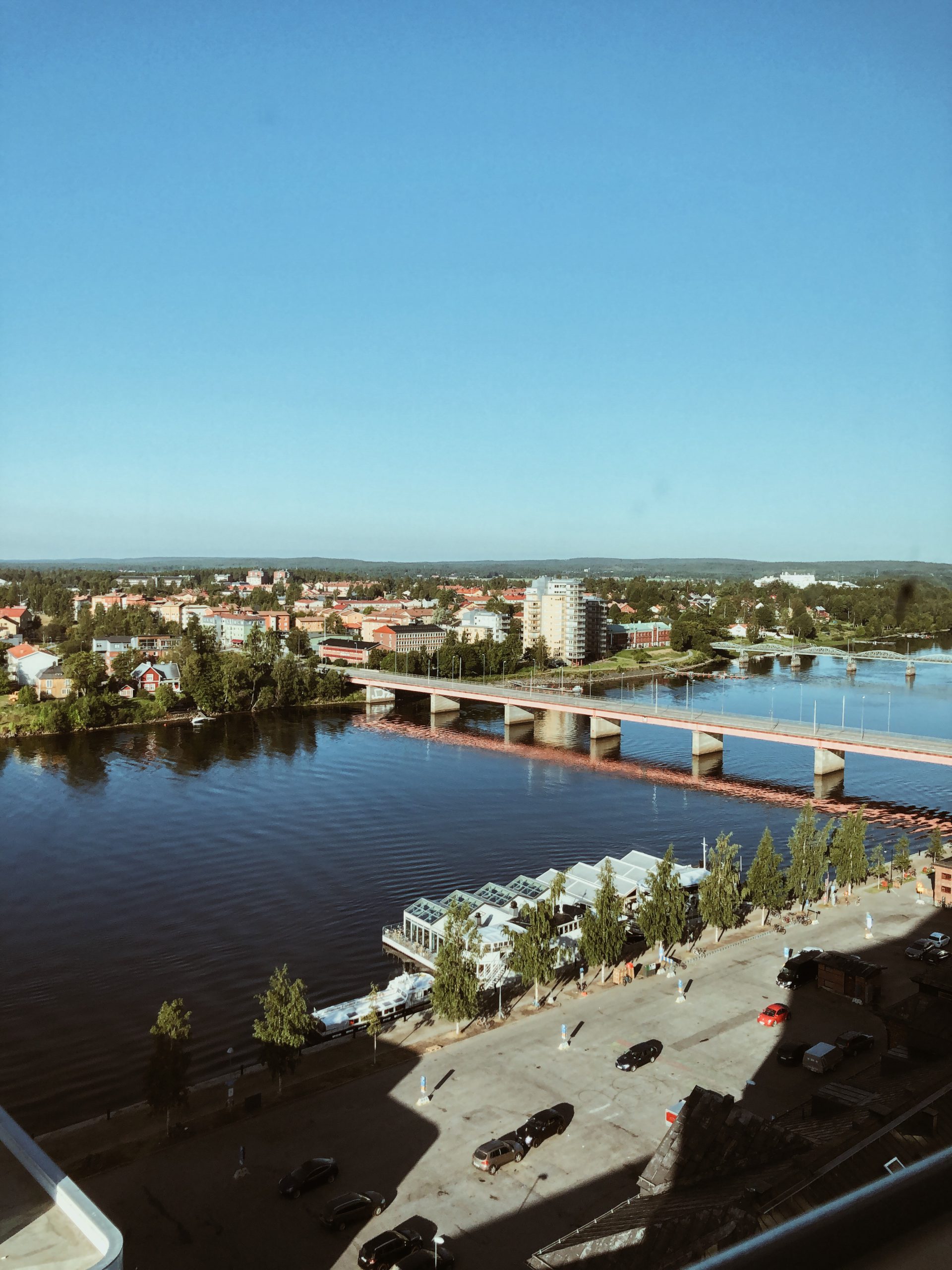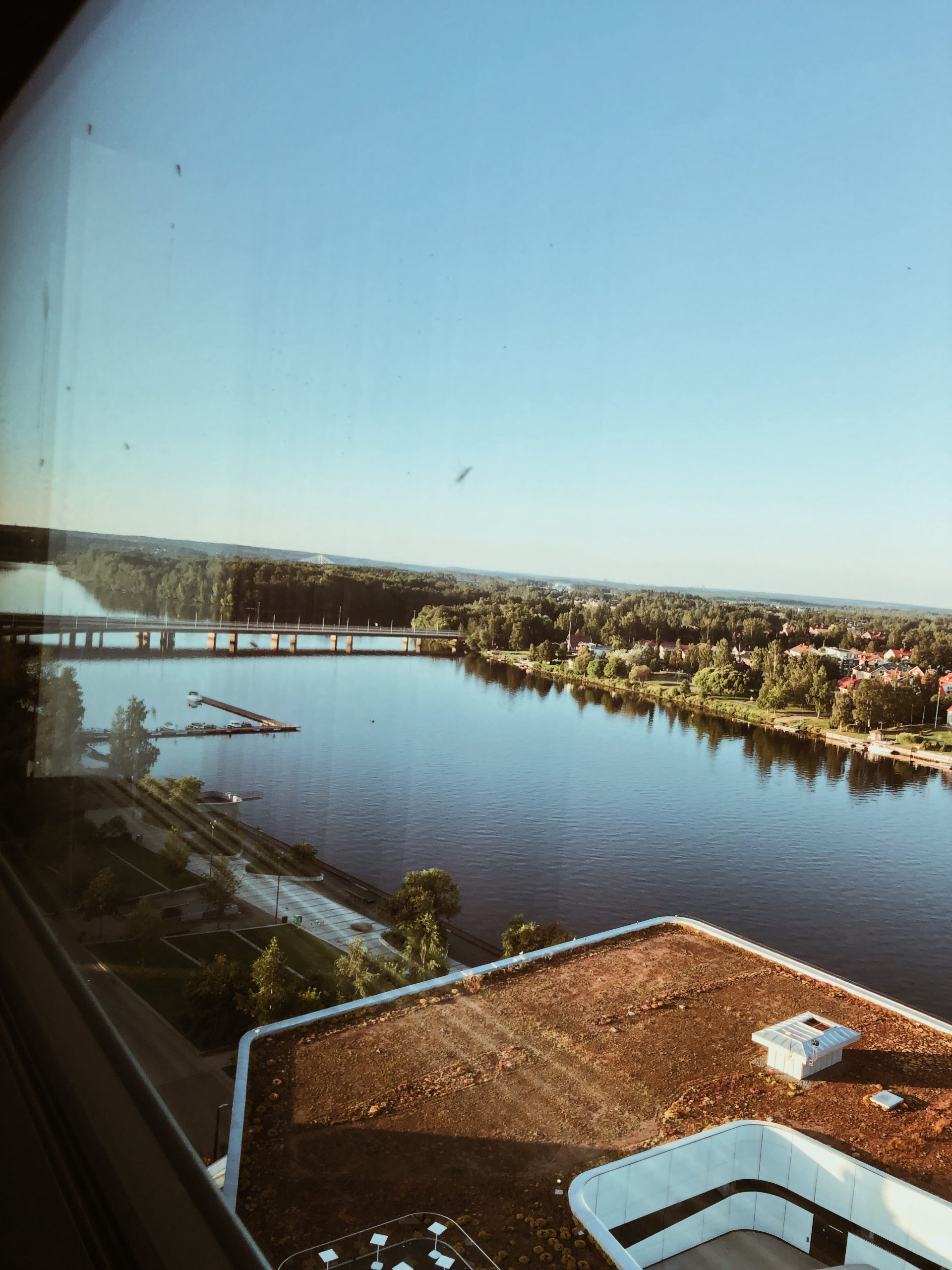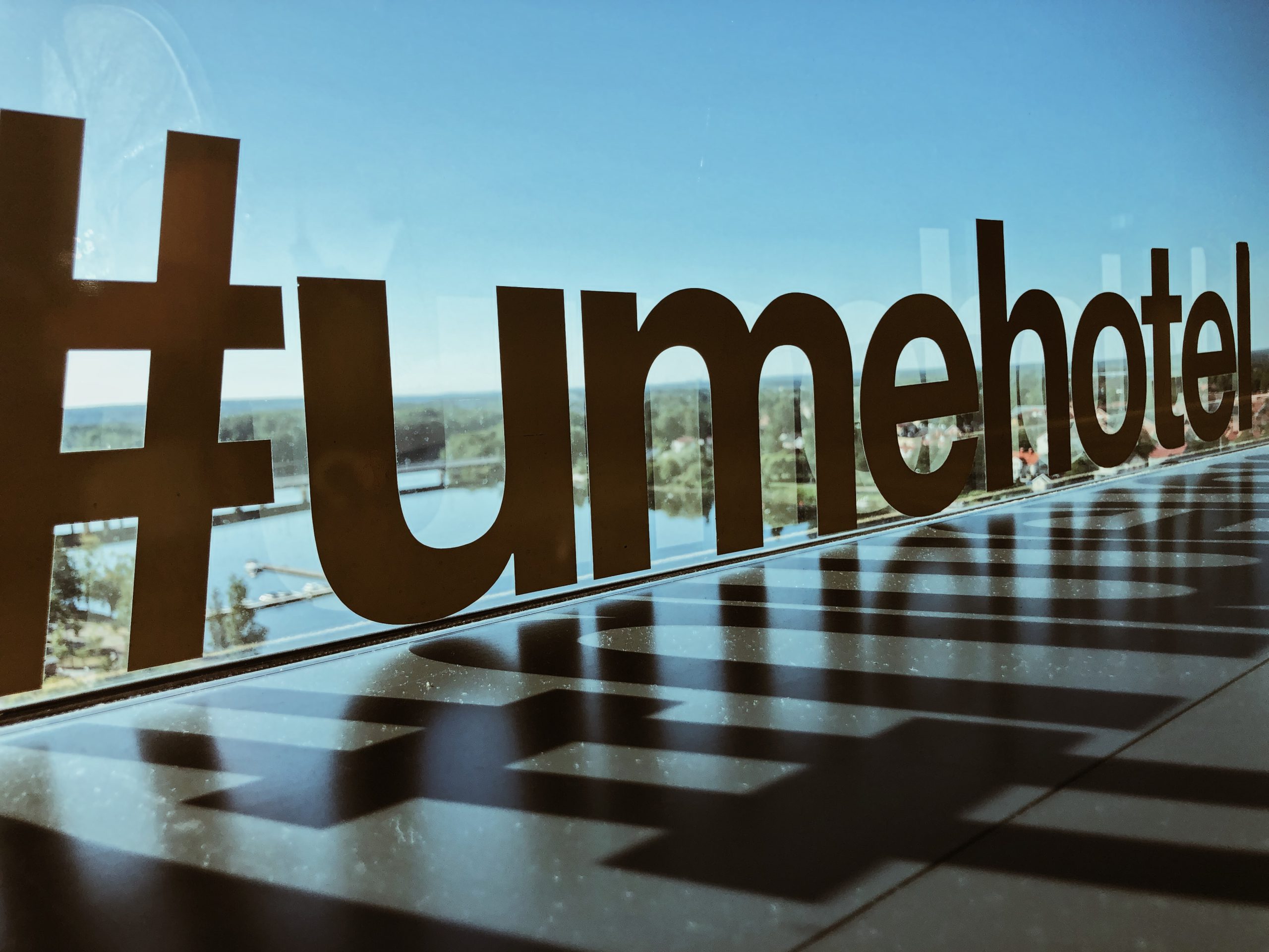 Det är inte direkt sämre åt det andra hållet. Vi bor mitt i smeten i Umeå på U&Me Hotel. En jättebyggnad och vi har rummet på högsta våningen.