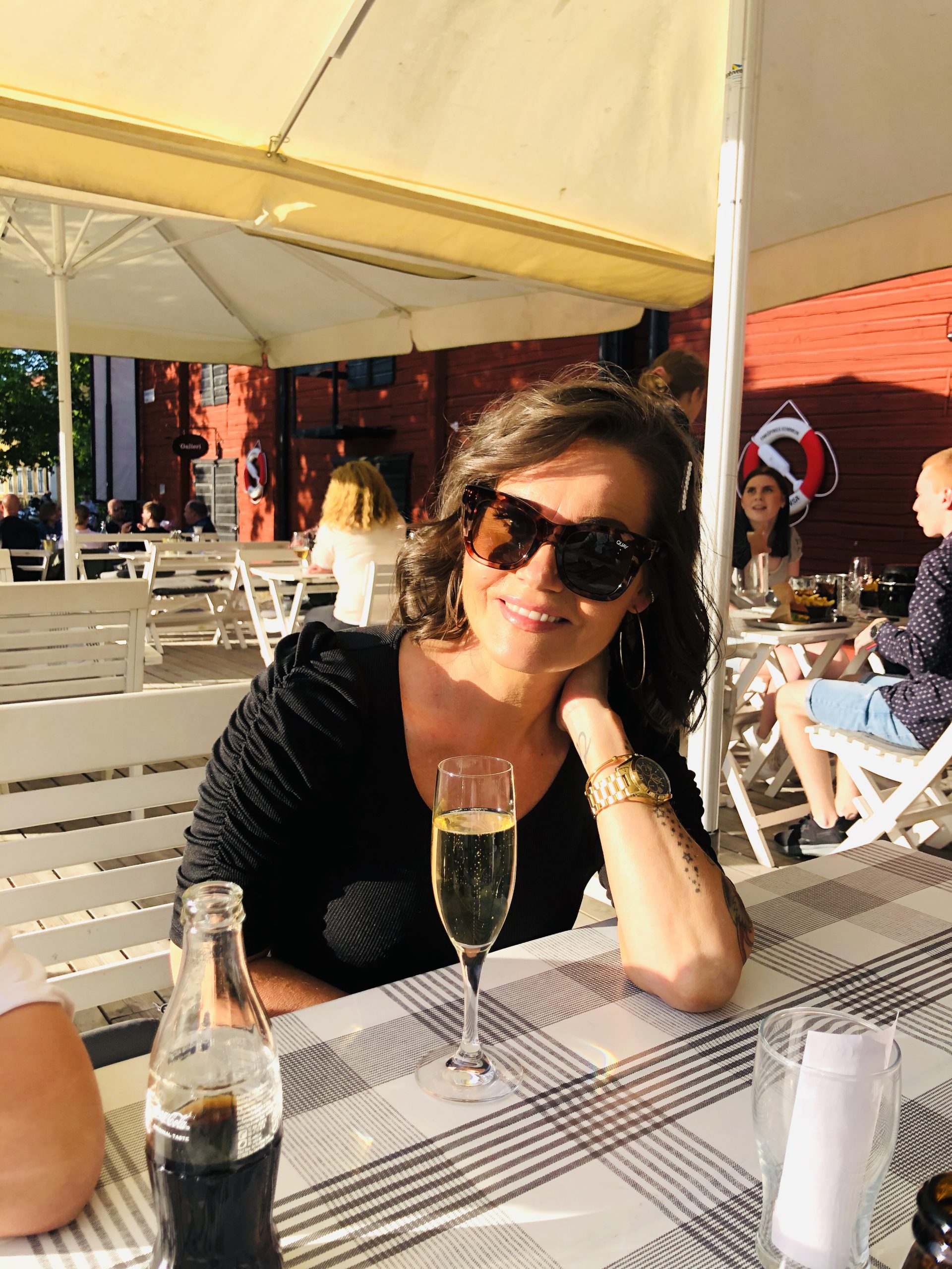 Vi satte oss utanför Grand Hotel och kikade på båtarna och hade det hur mysigt som helst. Jag är så glad för att jag blivit bättre på att leva i nuet. Att verkligen vara där vi är just då. Igår när vi satt just här så log jag inombords för att jag fick vara så lycklig just där och då. En fantastisk känsla som spred sig i hela mitt bröst. Kanske tycker du att jag låter töntig eller överdriven men jag lovar att livet blir bättre när man tillåter sig att vara bara jättelycklig såna där korta stunder. Min ångestproblematik och mitt katastroftänk har mycket handlat om att jag inte tillåtit mig att vara lycklig och glad. Då har jag varit rädd för att något kommer hända, ja om jag vågar vara lycklig. Låter helt sjukt, jag vet, men det är som en tvångstanke som inte vill lämna hjärnan. Som att det är bättre att vara beredd på hemska saker än att inte vara det. Och sitter jag här nu och är lycklig så kanske något hemskt kommer hända. Som jag sa, helt sjukt.
