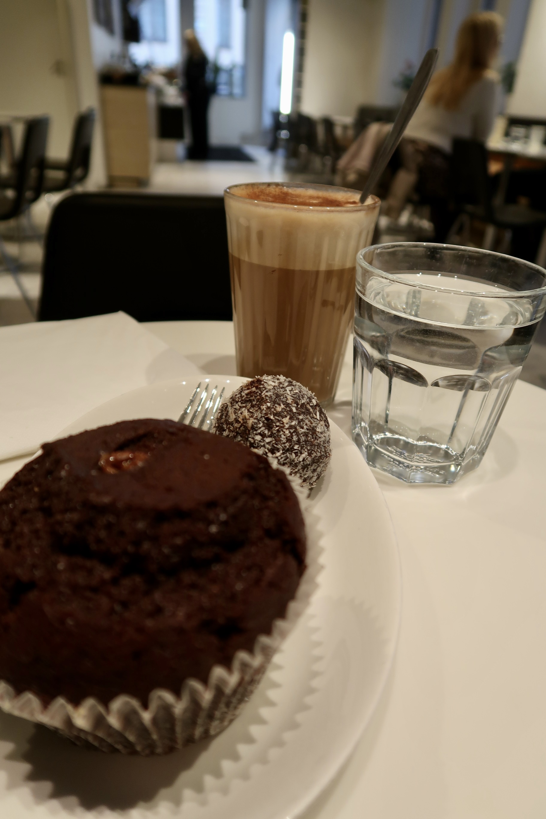 I torsdag var jag och Tony till Sthlm för möten. När jag var klar satte jag mig på det här mysiga cafet. Sååå god koffeinfri latte, tips tips. Den där chokladmuffinsen med dumle och chokladbollen var också magiskt god.