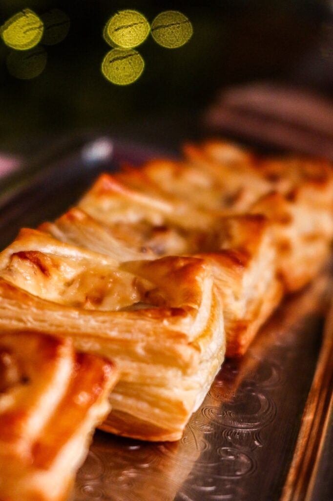 Gratinerade smördegssnittar! Något att njuta av till helgen kanske? Dessa åt vi på andra advent och de var så goda så hälften hade varit nog. Gratinerade smördegssnittar med den här fantastiska röran alltså, den är såååå god! Jag blandade färskost, lagrad riven prästost, fikonmarmelad, salt & peppar och alltså den röran som gratinerades i smördegssnittarna. Wooooow! Så vaninnigt gott, du måste testa dessa frasiga gratinerade härligheter till smördegssnittar.