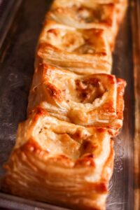 Gratinerade smördegssnittar! Något att njuta av till helgen kanske? Dessa åt vi på andra advent och de var så goda så hälften hade varit nog. Gratinerade smördegssnittar med den här fantastiska röran alltså, den är såååå god! Jag blandade färskost, lagrad riven prästost, fikonmarmelad, salt & peppar och alltså den röran som gratinerades i smördegssnittarna. Wooooow! Så vaninnigt gott, du måste testa dessa frasiga gratinerade härligheter till smördegssnittar.