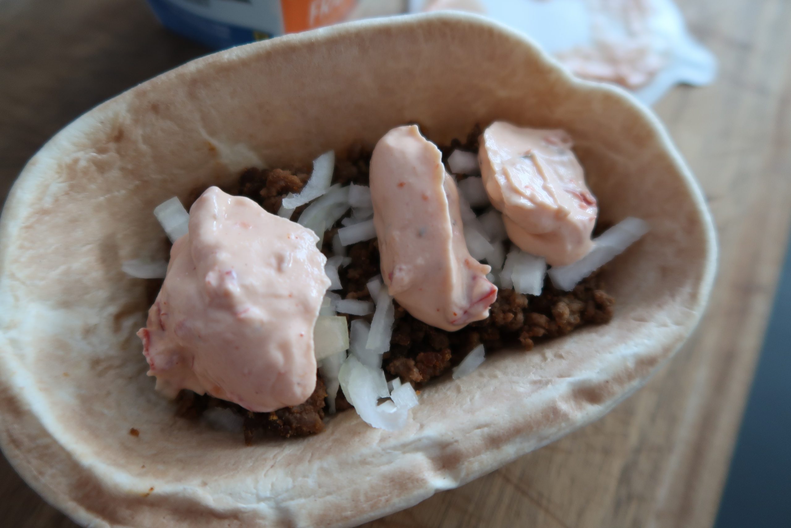 250 g tacoköttfärs (gör efter anvisningarna på Tacokryddepåsen, du kan också använda bara köttfärs utan tacokryddan)