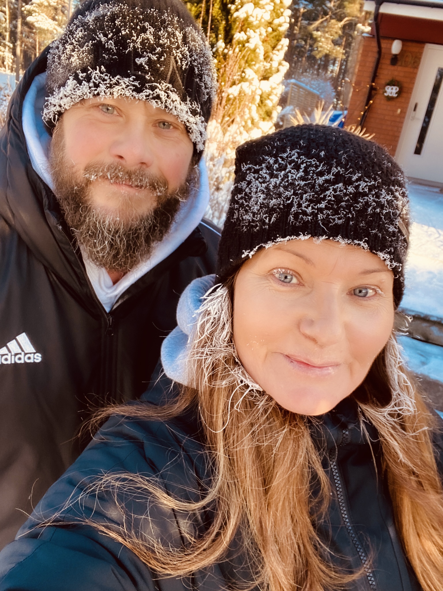 Haha! Ja det var lite kyligt på promenaden i morse. Vi blev som isiga snögubbar. T.o.m. mina ögonfransar var isiga.