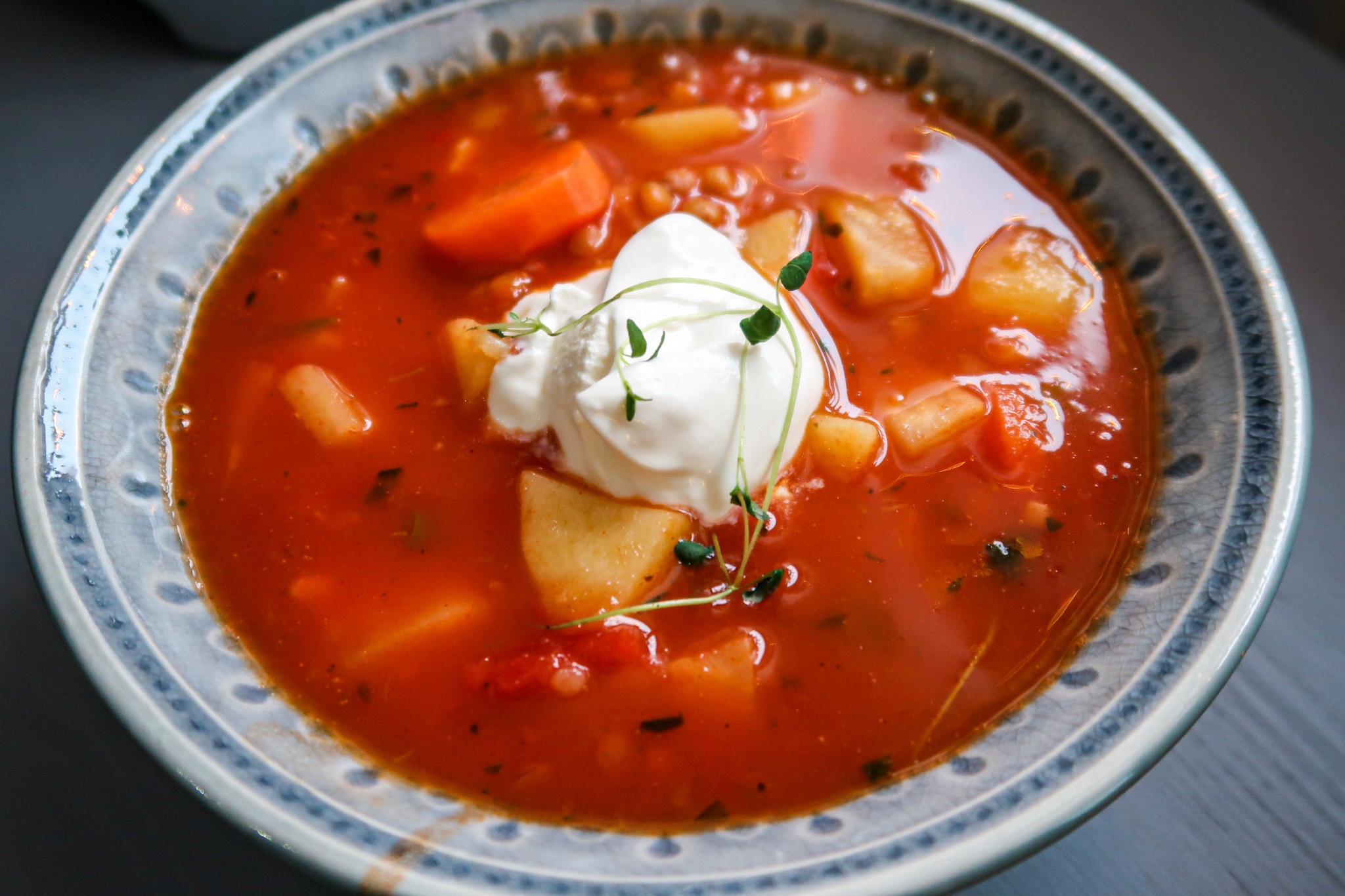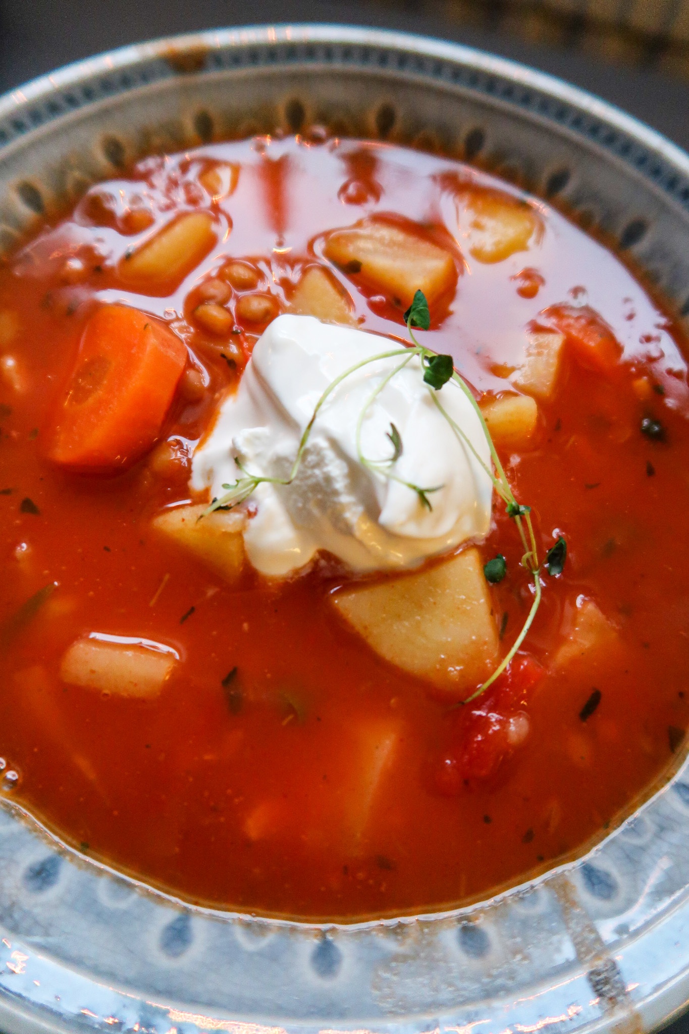 Sugen på en riktigt god grönsakssoppa? Satsa då på denna grönsakssoppa med linser. Den är både mättande, värmande och så himla god. En klick creme fraiche i den här grönsakssoppan gör verkligen så mycket för smaken.