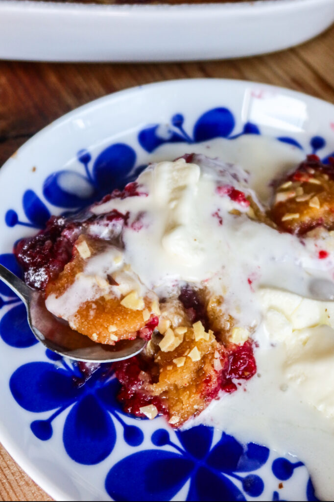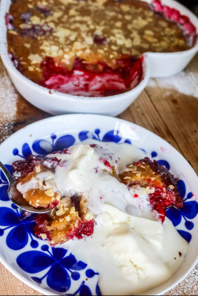 Den här hallonkakepajen med mandelmassa blev som sagt magiskt god! På något sätt så visste jag att den skulle bli succé, det kan inte bli annat med smör, mandelmassa och hallon. 😅 Smeten du brer ut på hallonen är bara så magiskt god, lite seg och frasig samtidigt som den smakar himmelskt gott!