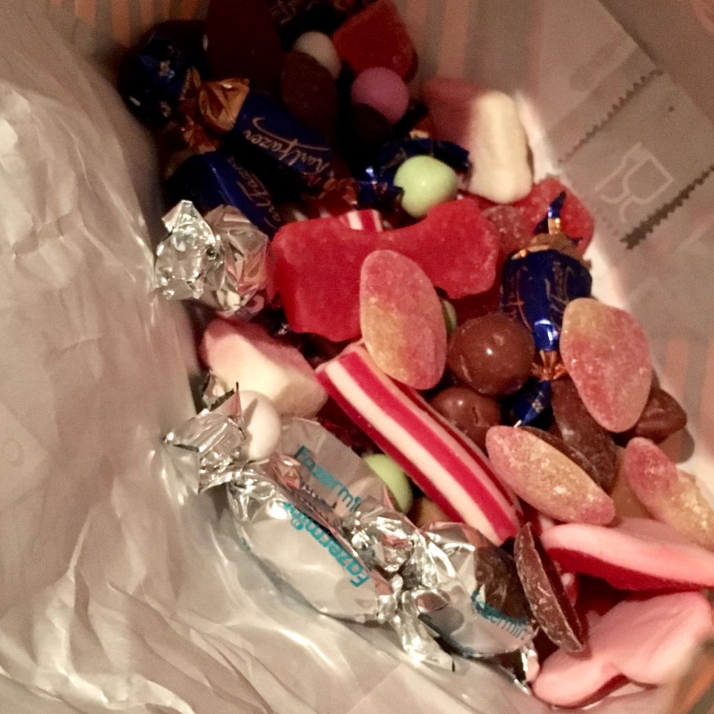 Sedan plockade jag undan allt, tvättade av sminket och avslutade med lite godis i sängen. Äter försiktigt då min mage inte mått så bra. Den är ändå bättre igen tack och lov *peppar peppar*.