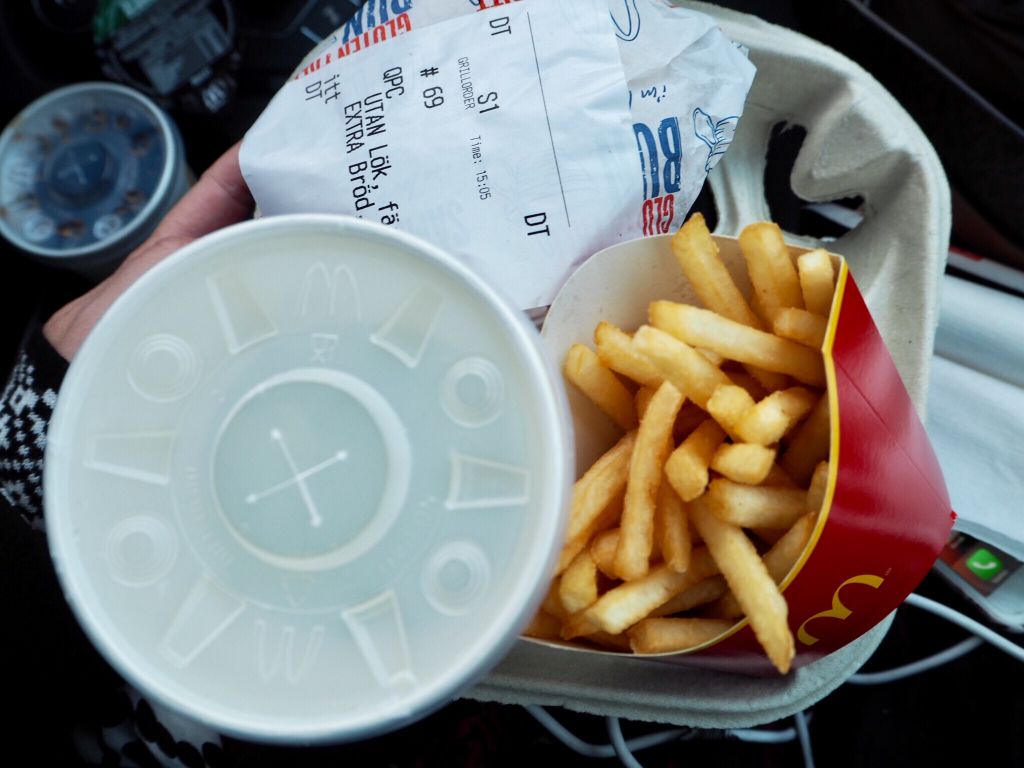 Igår på eftermiddagen började vi vår färd mot Stockholm. Dock hade vi ingen lunch i magen varför vi fick stanna till på vägen.