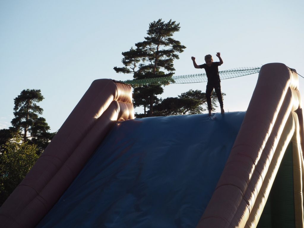 Vi hann också med det sista hoppet i Luftkuddelandet. 80 pix för en heldag kostar det. Sen är det hoppborgarnas ”flösch de luxe” varianter och hur många som helst. Milo ÄLSKAR det och på kvällen var det fullt av ungar.