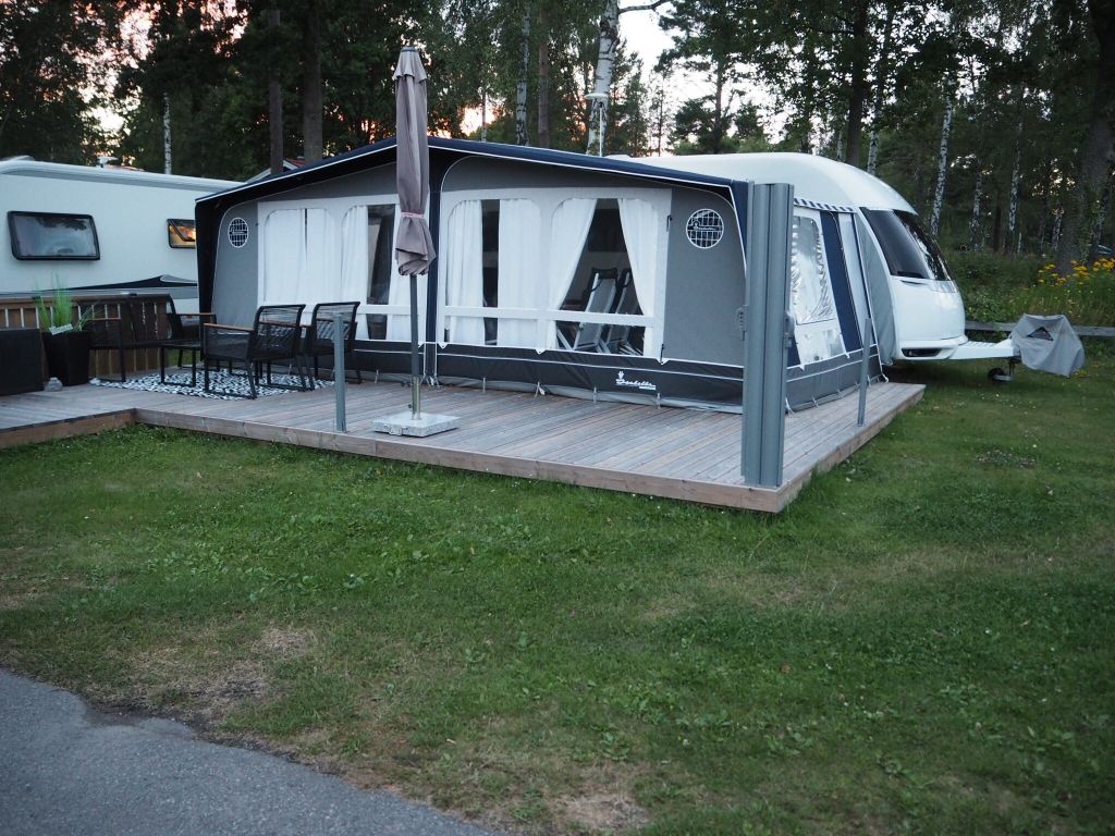 Idag har vi hunnit med att flytta vår husvagn till ”gräddhyllan”. Eller jag kallar den så då den ligger i något som heter ”Viken”. Vi har badet ett stenkast ifrån oss bara och de fina campingekipagen radar upp sig. Vågade inte ta bild på dem där folk är hemma, folk kan ju tro man är galen. Men det finns några WOW ekipage alltså. Jag är så imponerad och totalt nernördad, jag vill BARA långcampa här nu och bygga upp ett sånt jäkla fetställe och ”Ernsta” loss så det bara sjunger om det!