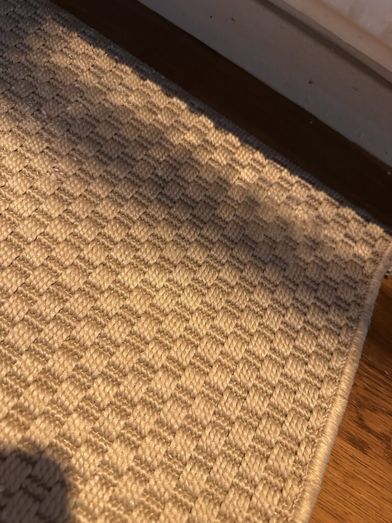 Här hade jag fått bort det mesta! Stearinfläcken var gigantisk, dessutom hade det skvätt stearin på säkert 50 cm av mattan. Detta husmorsknep var verkligen superbra. Funkade toppen! Så pass bra att jag inte fick köpa en ny matta som jag egentligen ville. Haha!