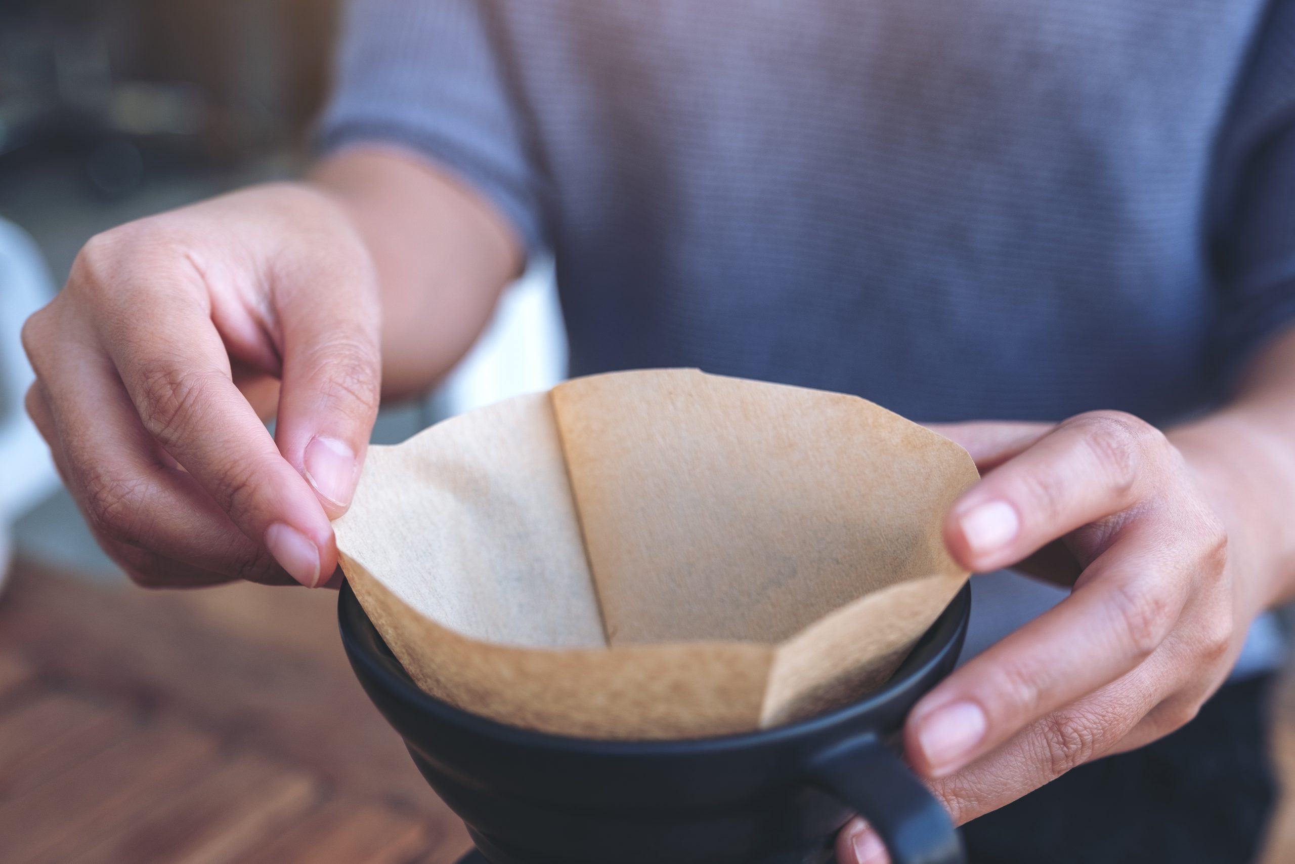 Du har säkert sett att kaffefiltret alltid är räfflat i botten och på ena sidan. Det finns nämligen en anledning till det, det är för att du ska vika in filtret där. Detta kommer att justera storleken och också stärka filtret så det inte ramlar ihop under bryggningen.