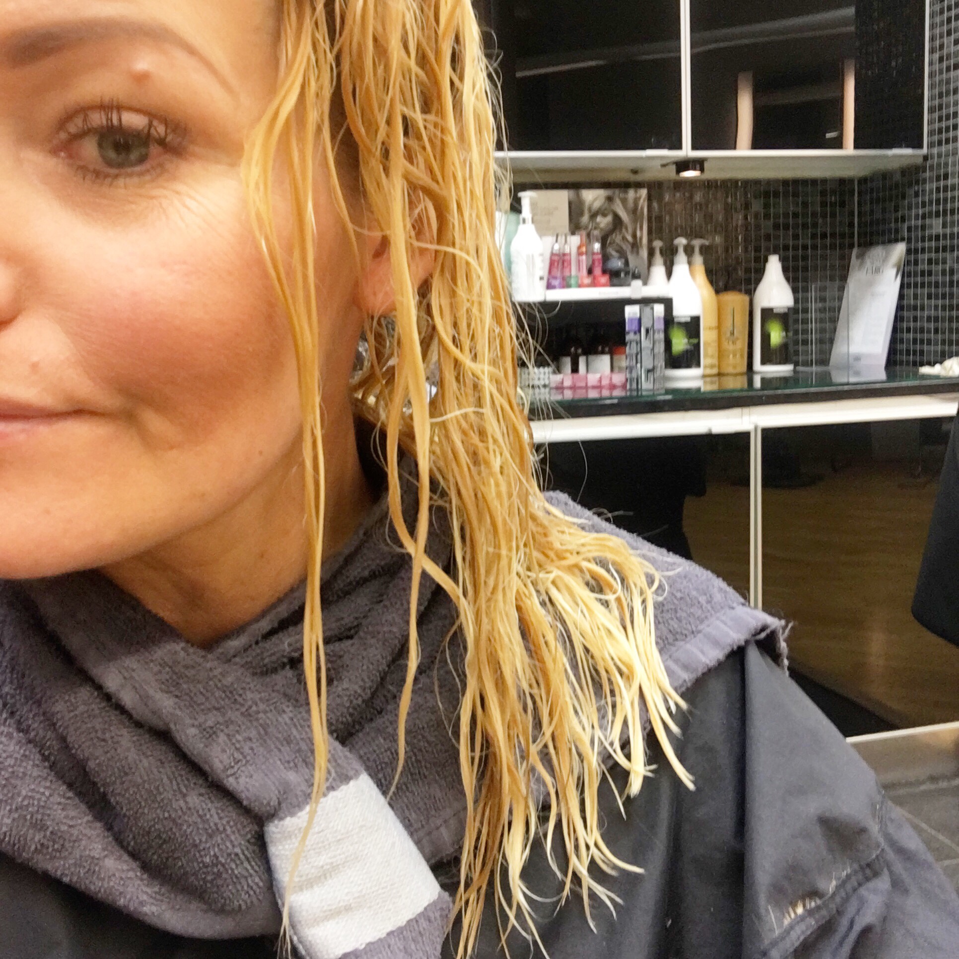 Nu har jag varit hos bästa Chanel och fixat frillan. Det blev lite mer ljust….vi går försiktigt fram nu. Vi vill inte förstöra mer nu. Förra gången förstördes så mycket av topparna, detta pga att jag får beläggningar av vattnet hemma. Så sjukt det där, tungmetaller i vatten och blekningsmedel kan vara förrädiskt för ett hår. Det kan ni tänka på om ni ska bleka erat hår.