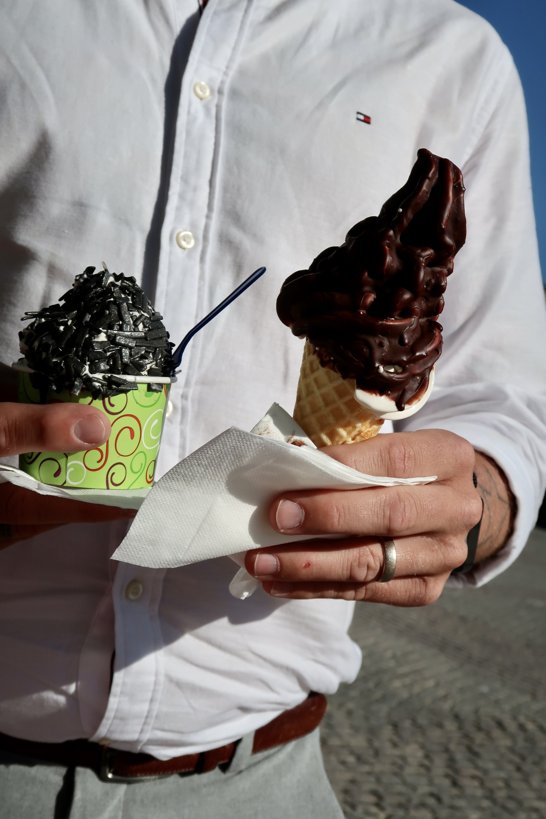 Superduperproppmätta efter maten satte vi oss på torget och åt glass. Sånt finns det ju alltid plats för, inte sant? Det är en annan mage till godsakerna än det är till mat. Haha! 🤣