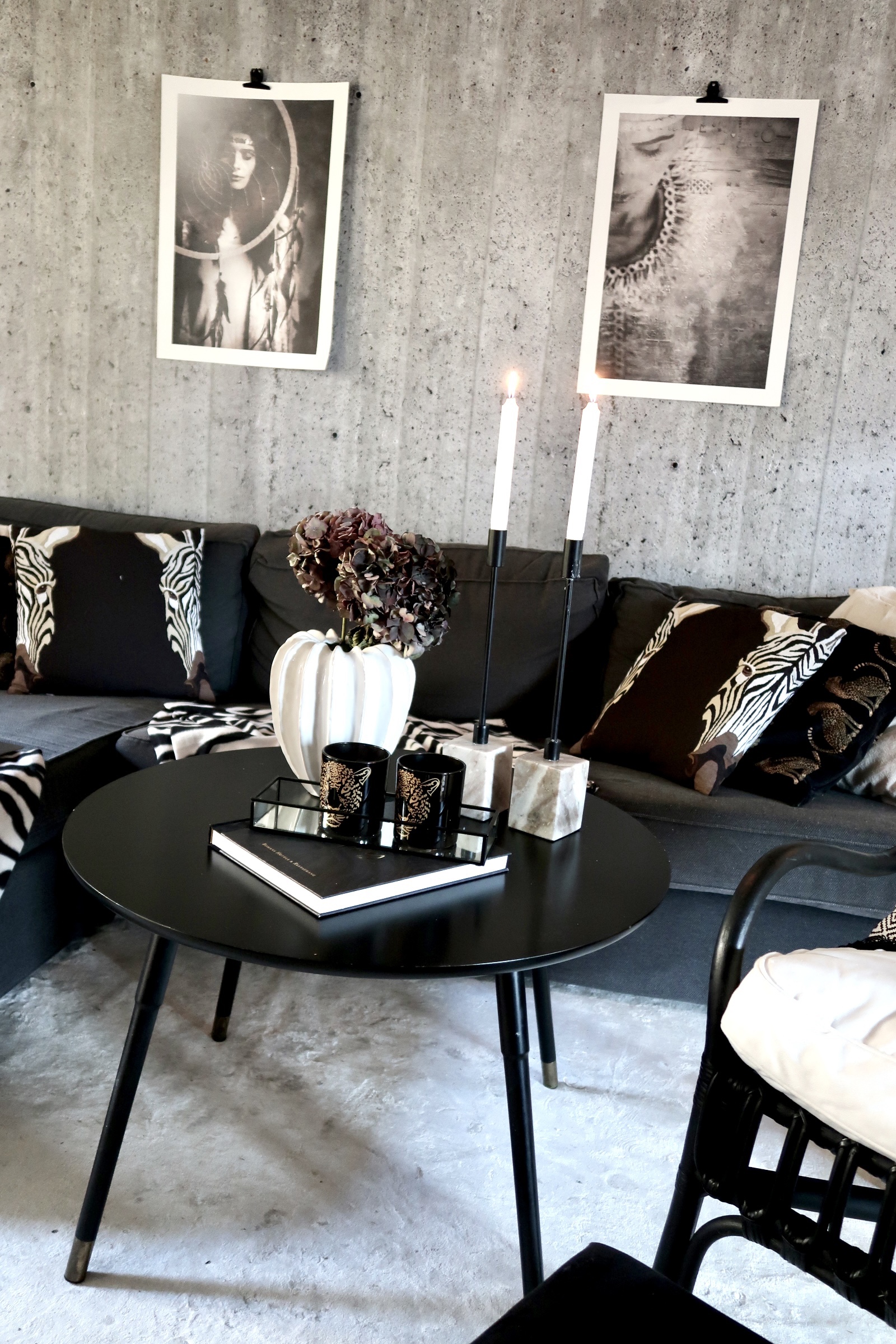 Älskar vårt vardagsrum. Nu har ramarna som jag lämnade in för att speglas kommit så snart ska dom upp där bakom soffan. De fina tavlorna/postersen kommer då en annan fin plats, dom passar så fint i vårt vardagsrum ju.