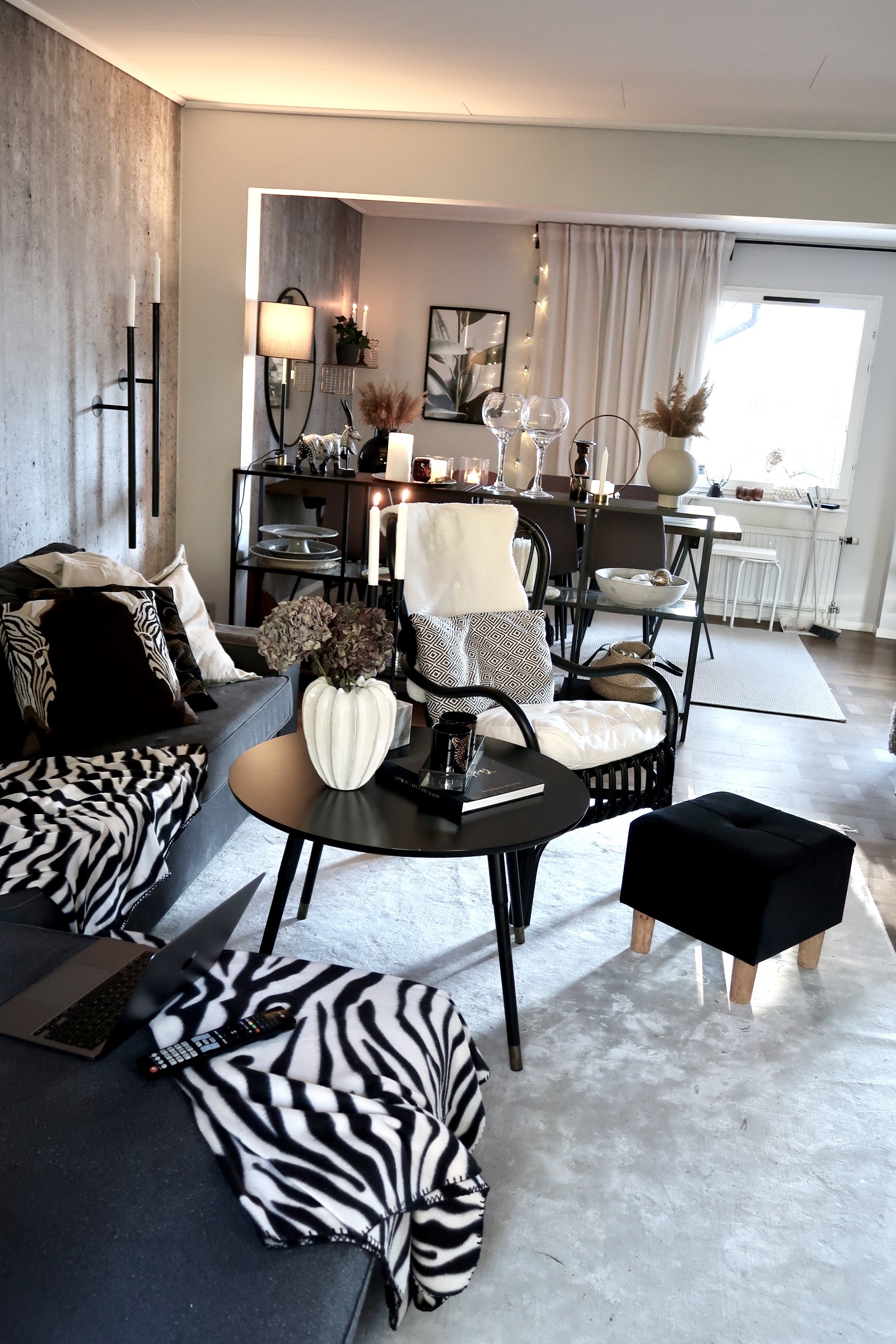 1. Jätte snyggt du är så duktig. Jag har några funderingar äter ni vardagsmat i det stora borden? Om ja är det inte lite jobbigt ta ner alla saker från bordet och sen ställa tillbaks? Likadant soffbordet om man vill dricka kaffe och käka kakor eller vill ha chips,godis skålar? Hoppas du inte missuppfattar jag vill bara förstå hur det funkar i praktiken?